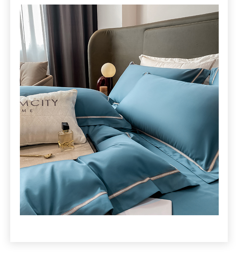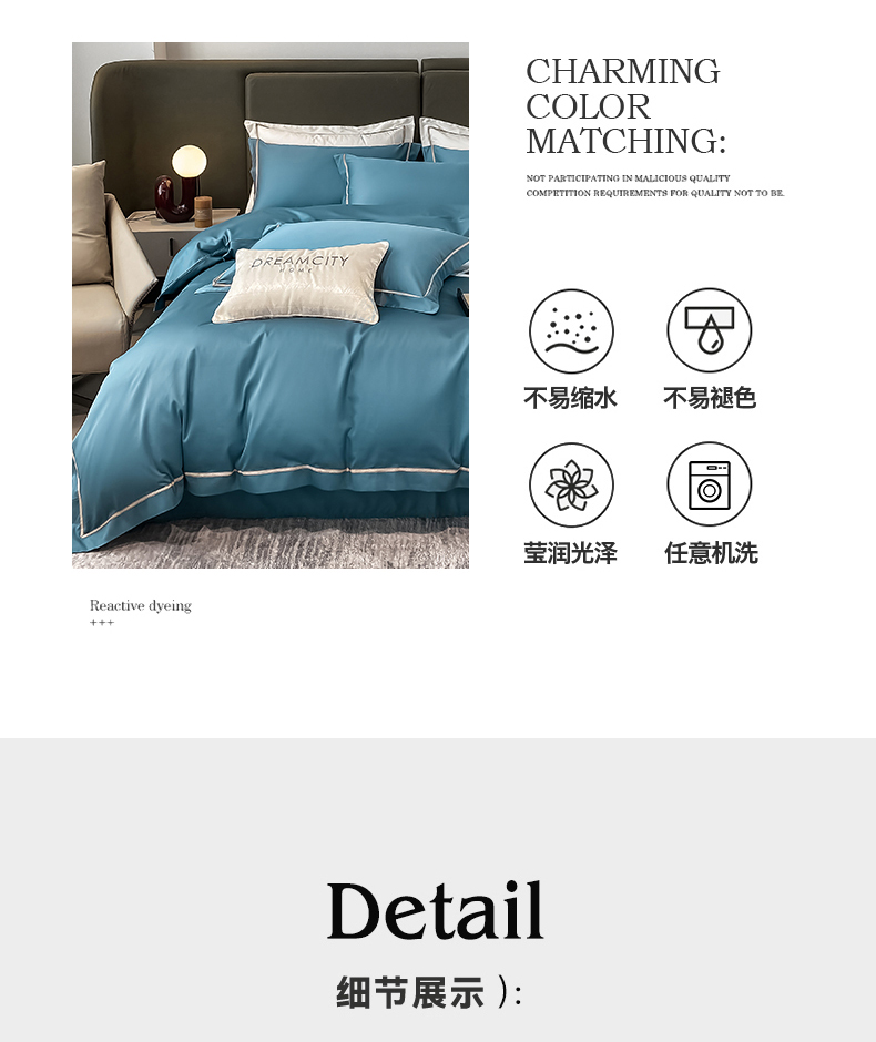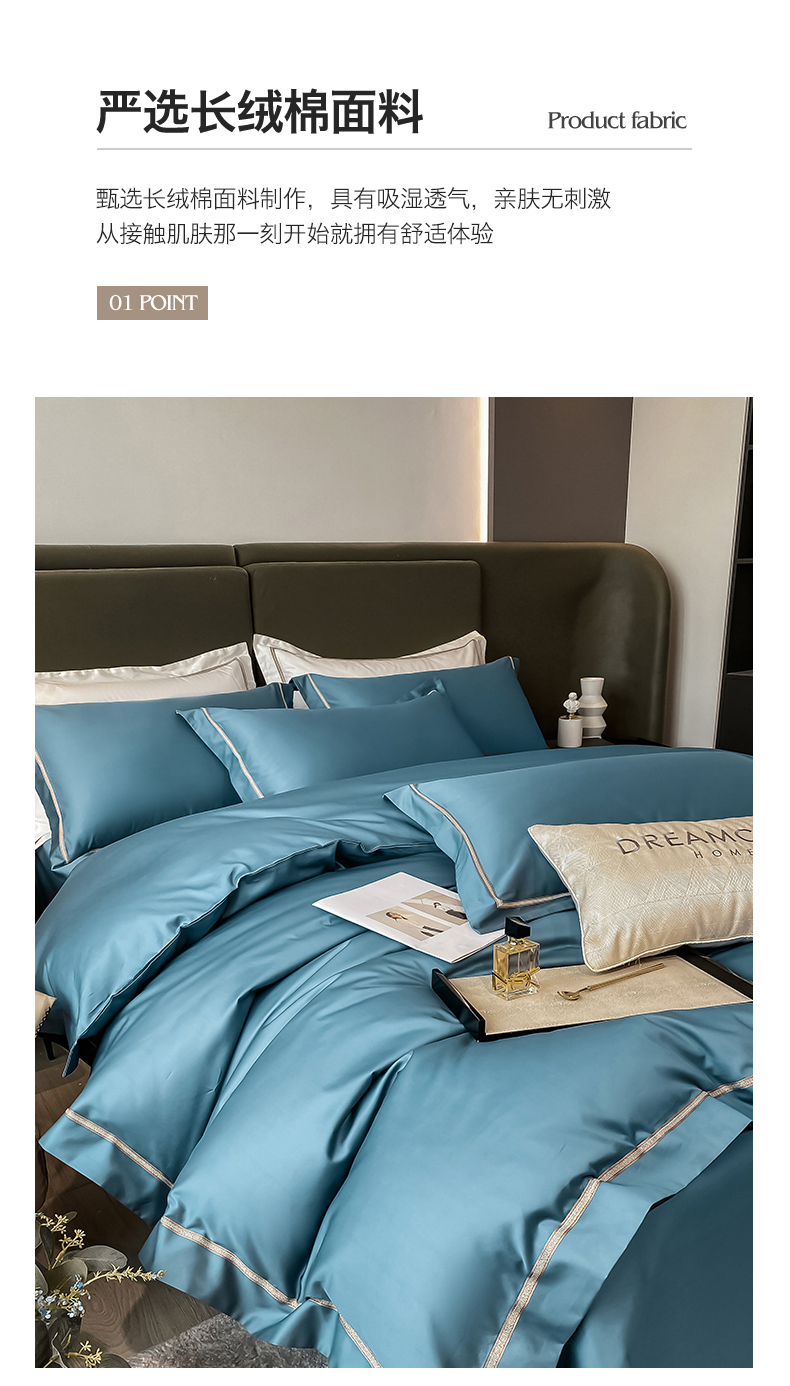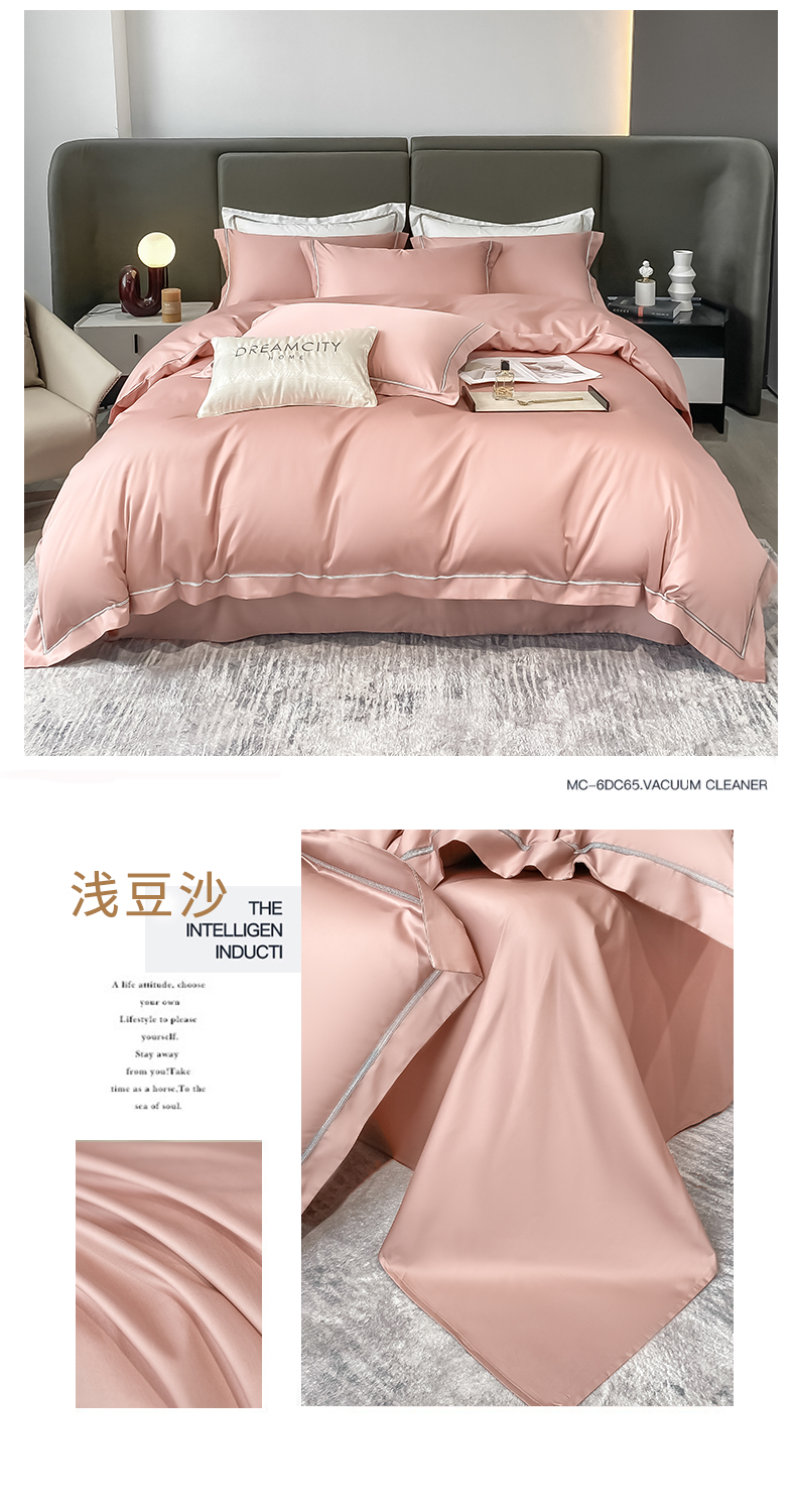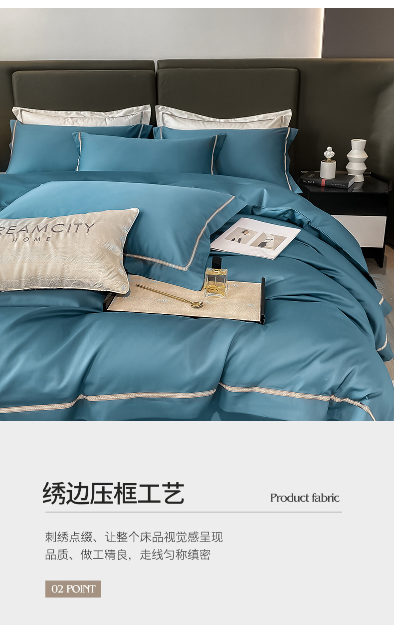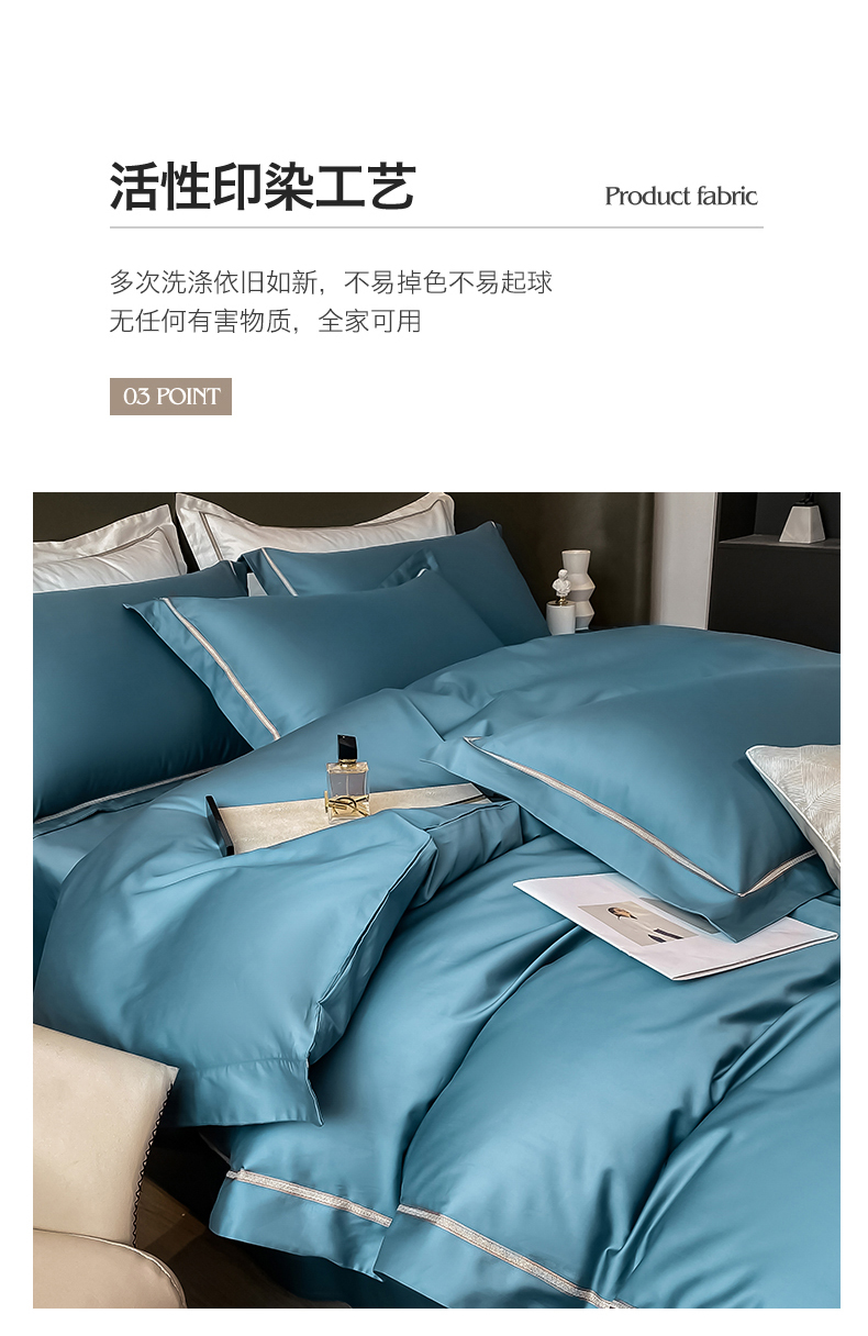 全棉80支长绒棉纯色贡缎四件套压边工艺