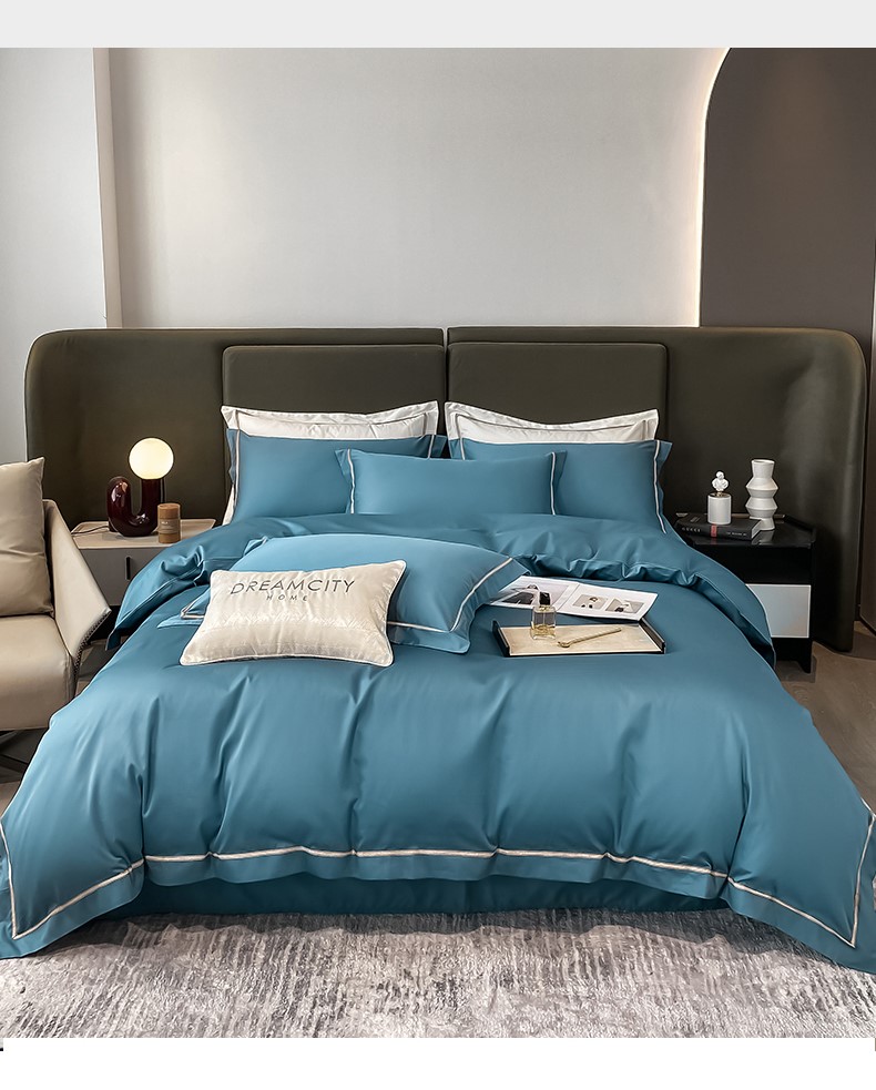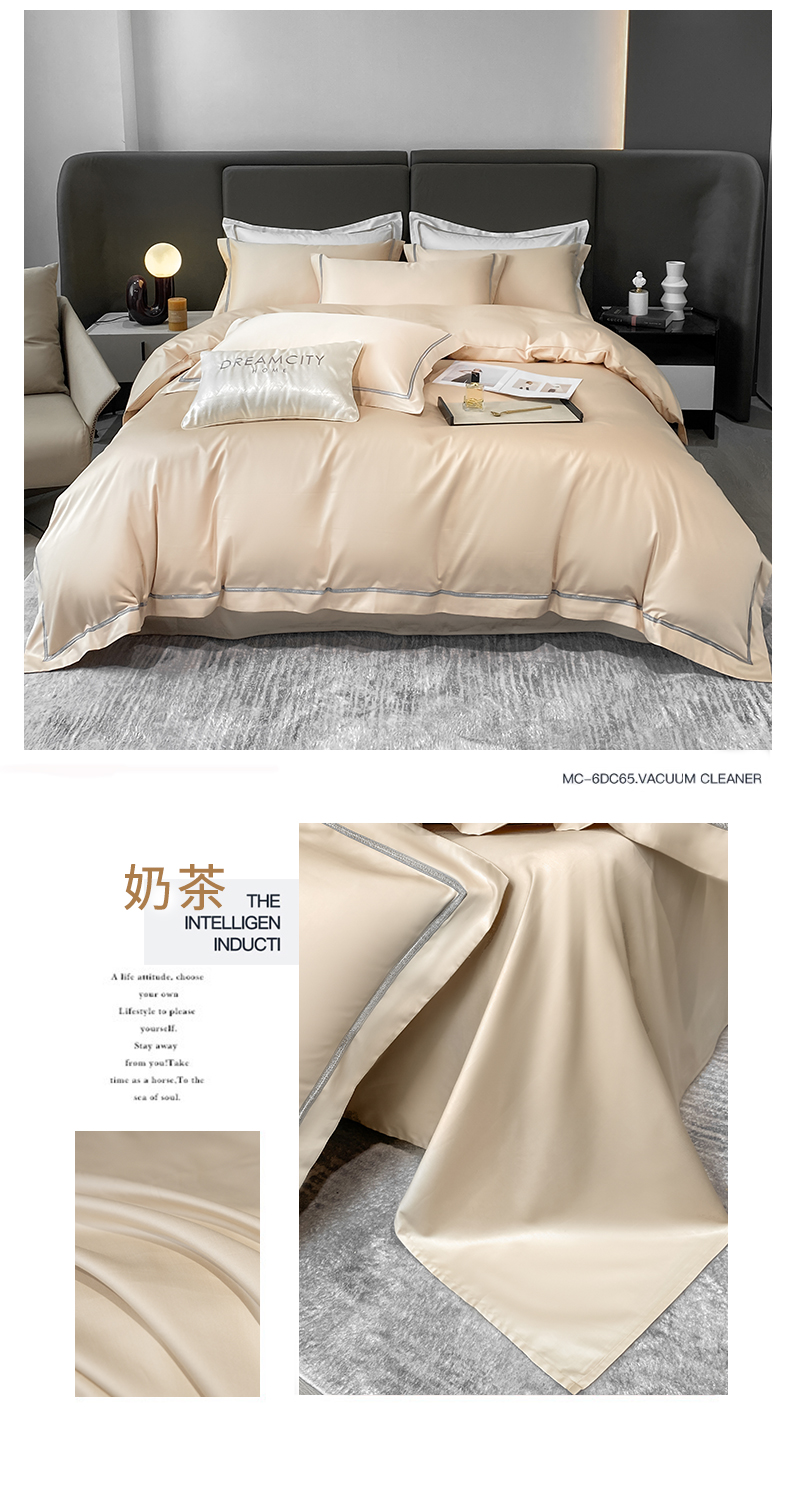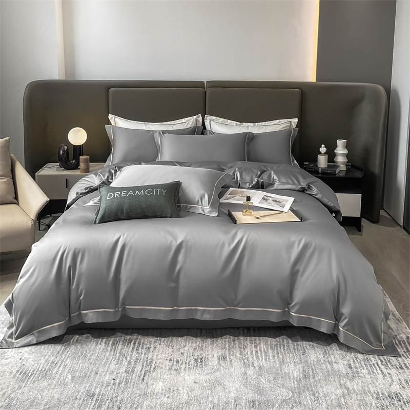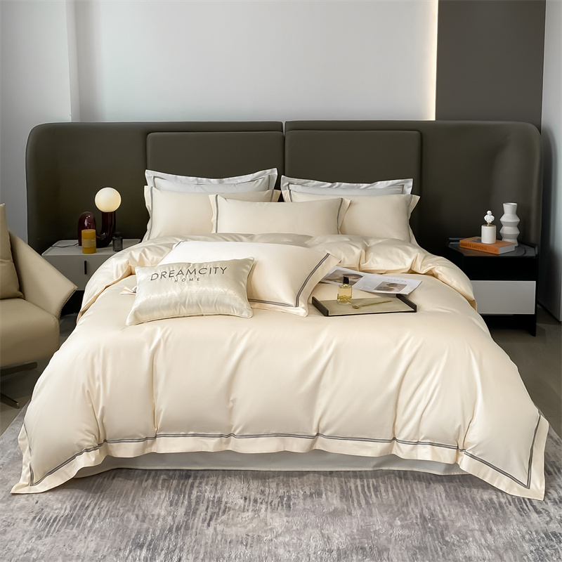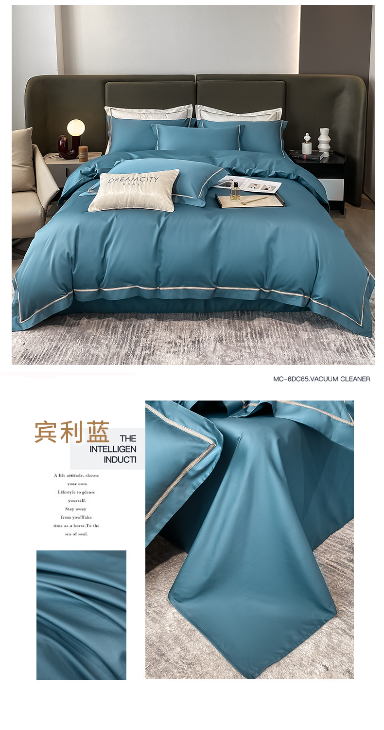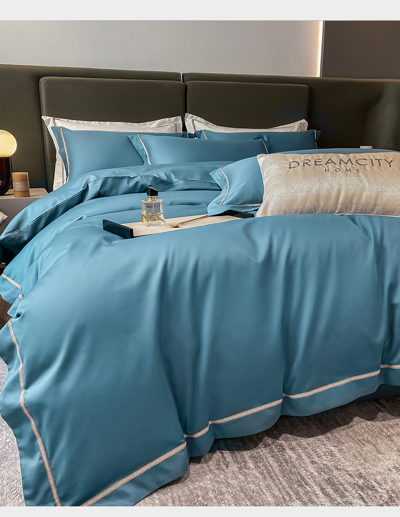 全棉80支长绒棉纯色贡缎四件套压边工艺