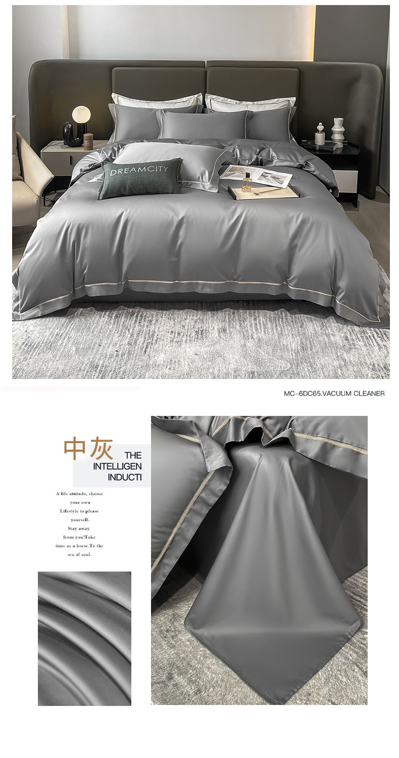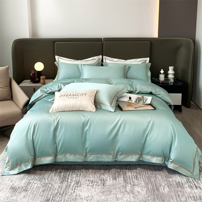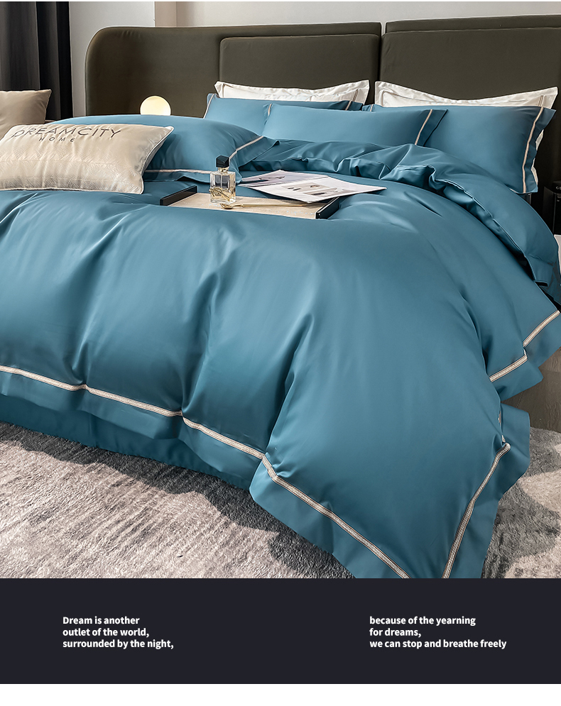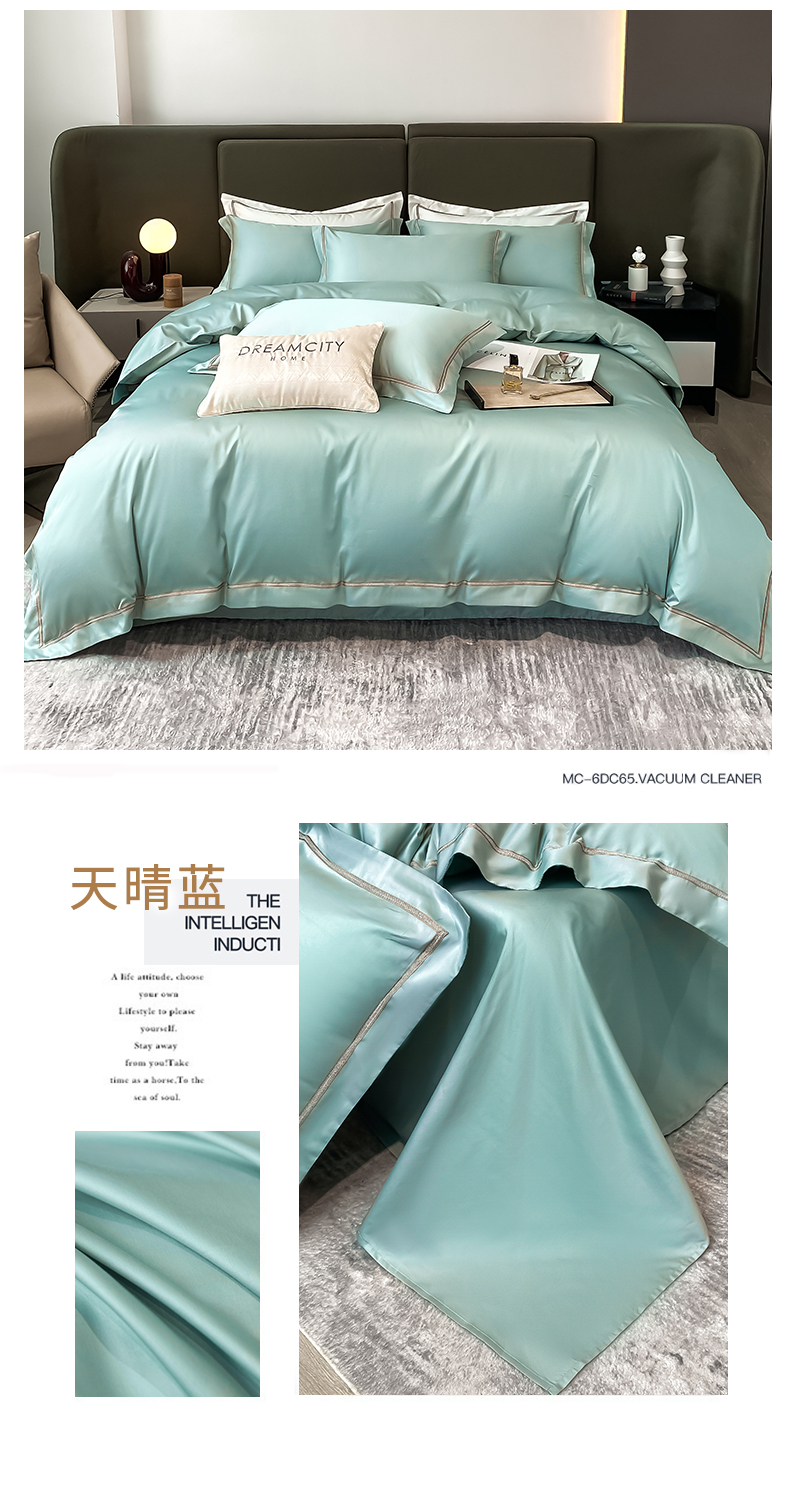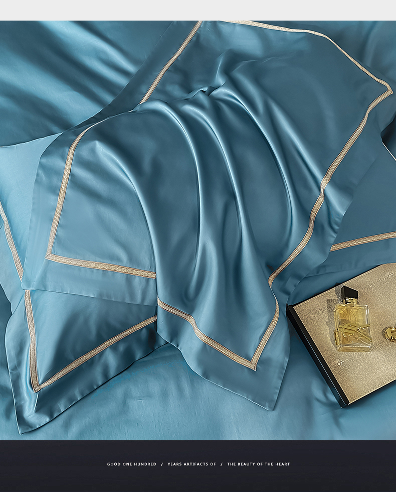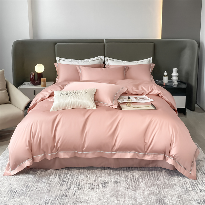 全棉80支长绒棉纯色贡缎四件套压边工艺