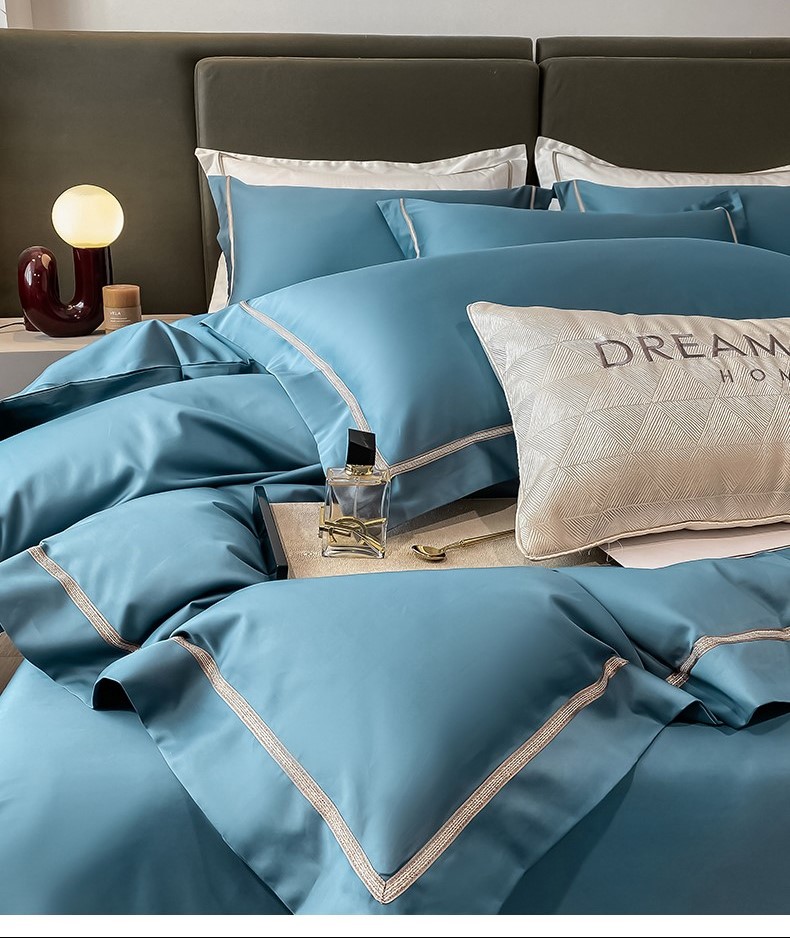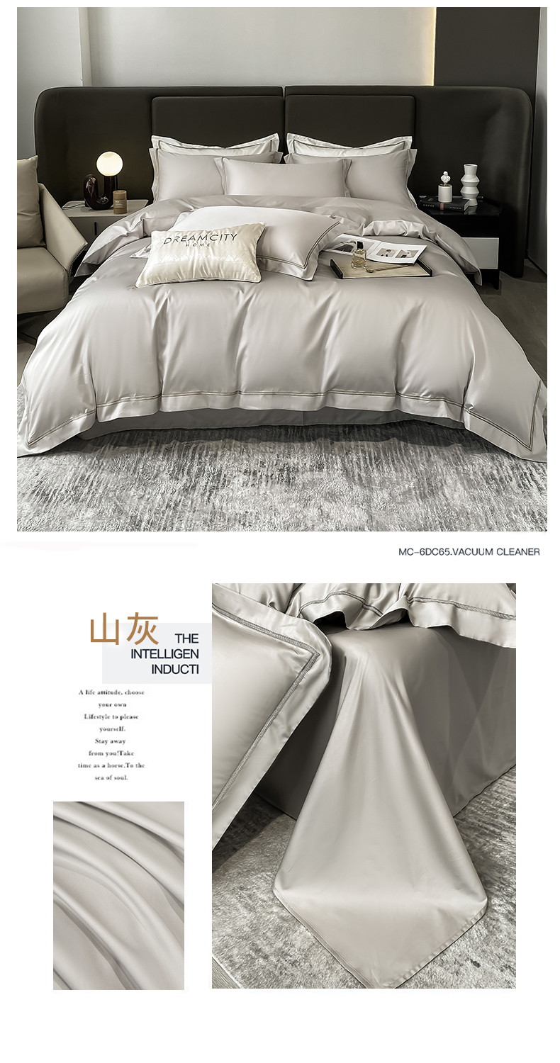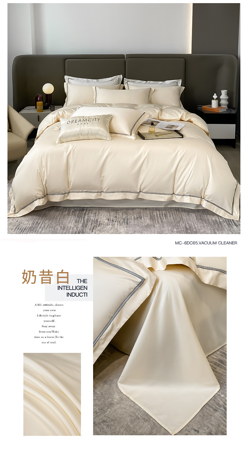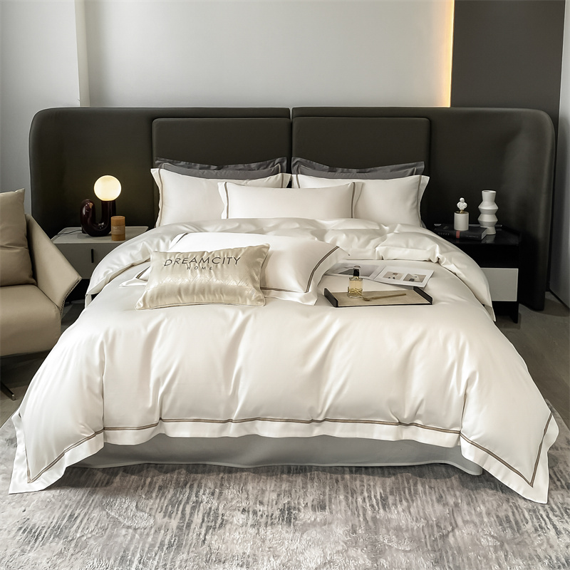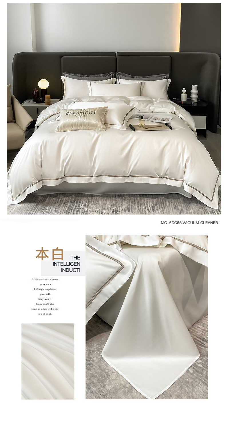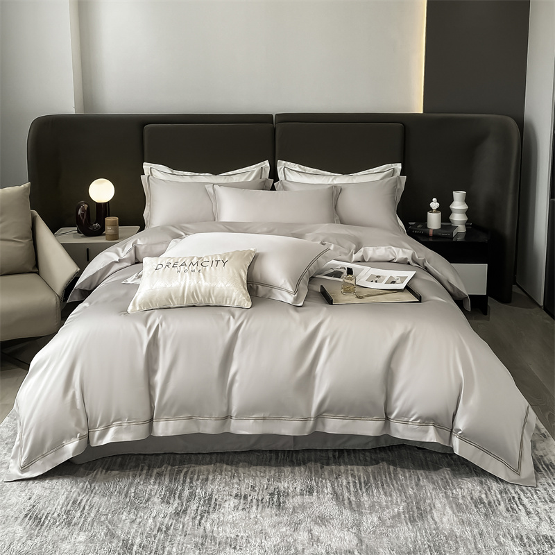 全棉80支长绒棉纯色贡缎四件套压边工艺