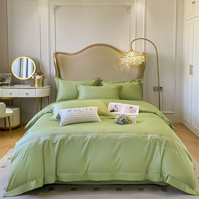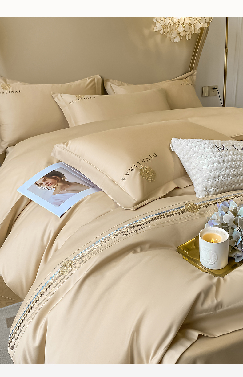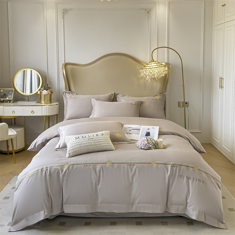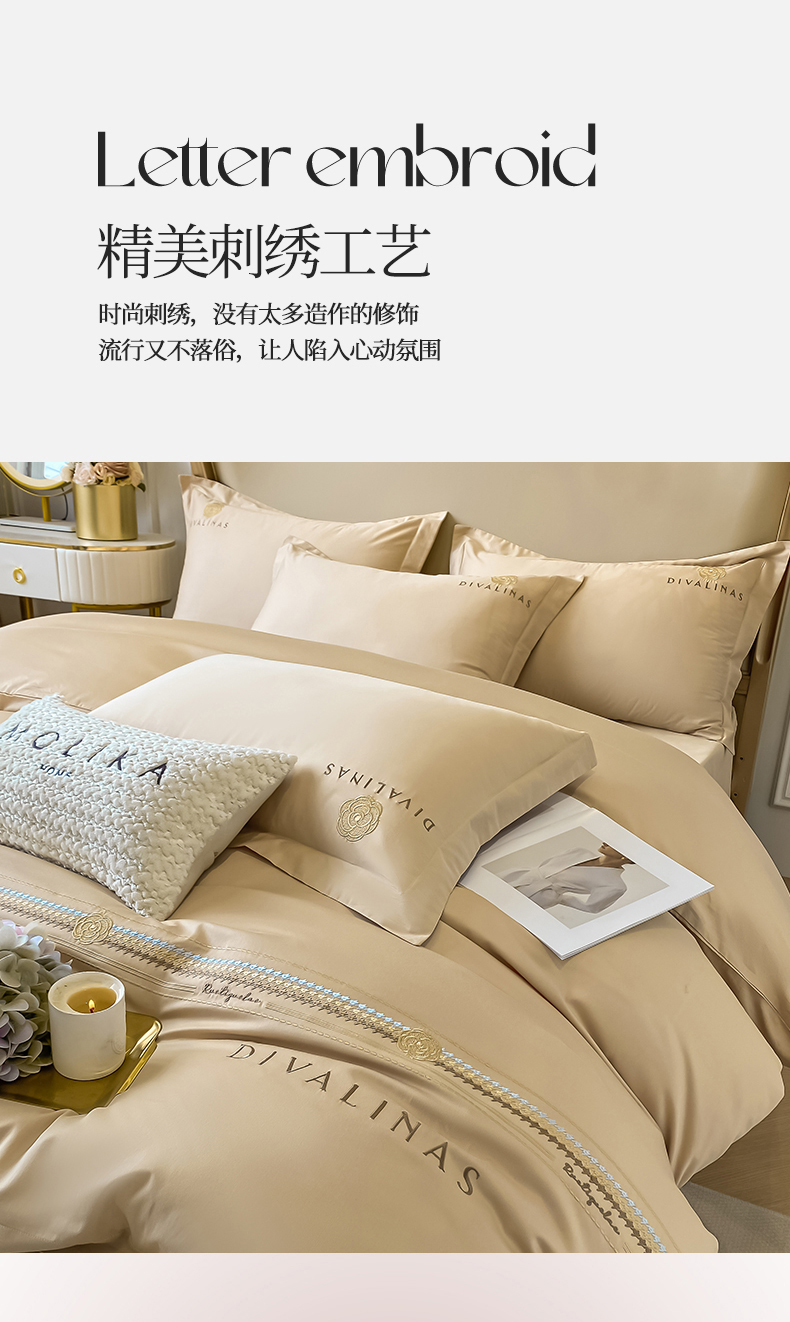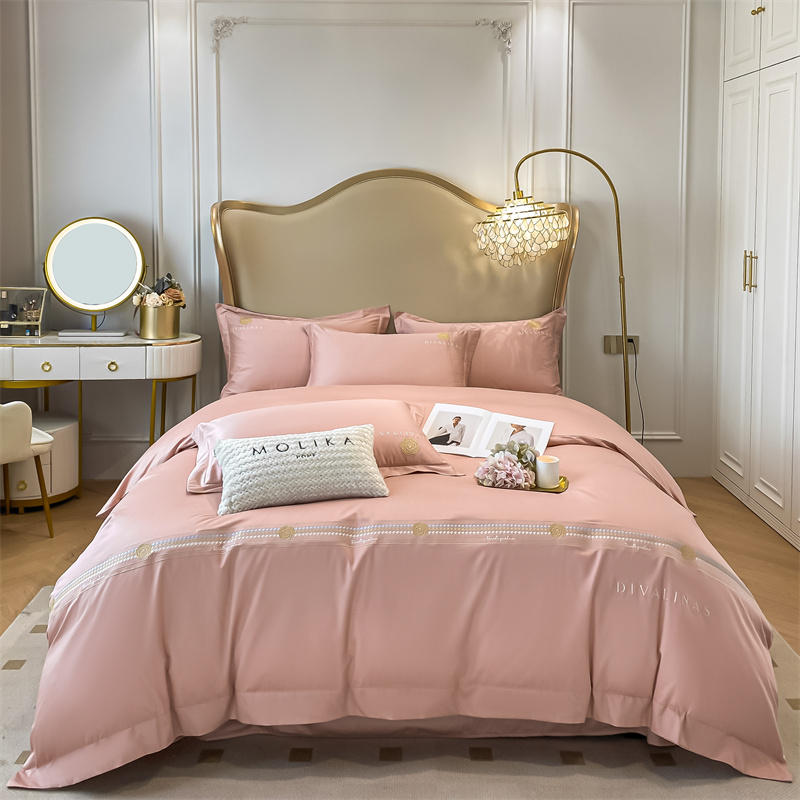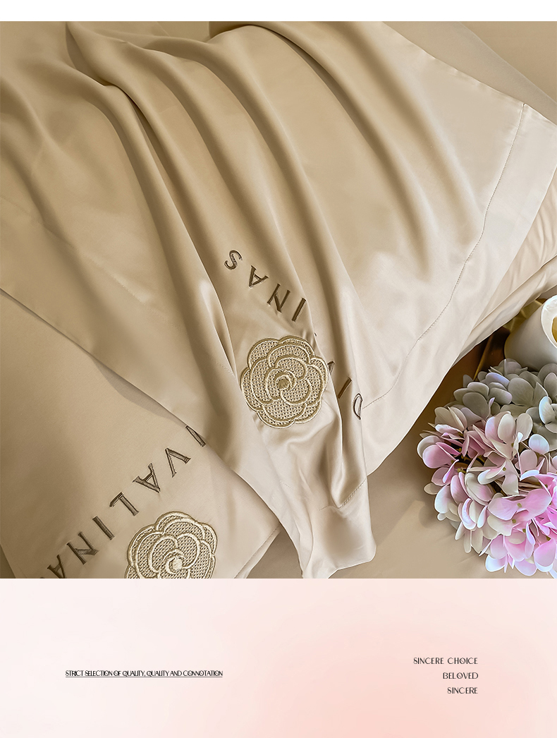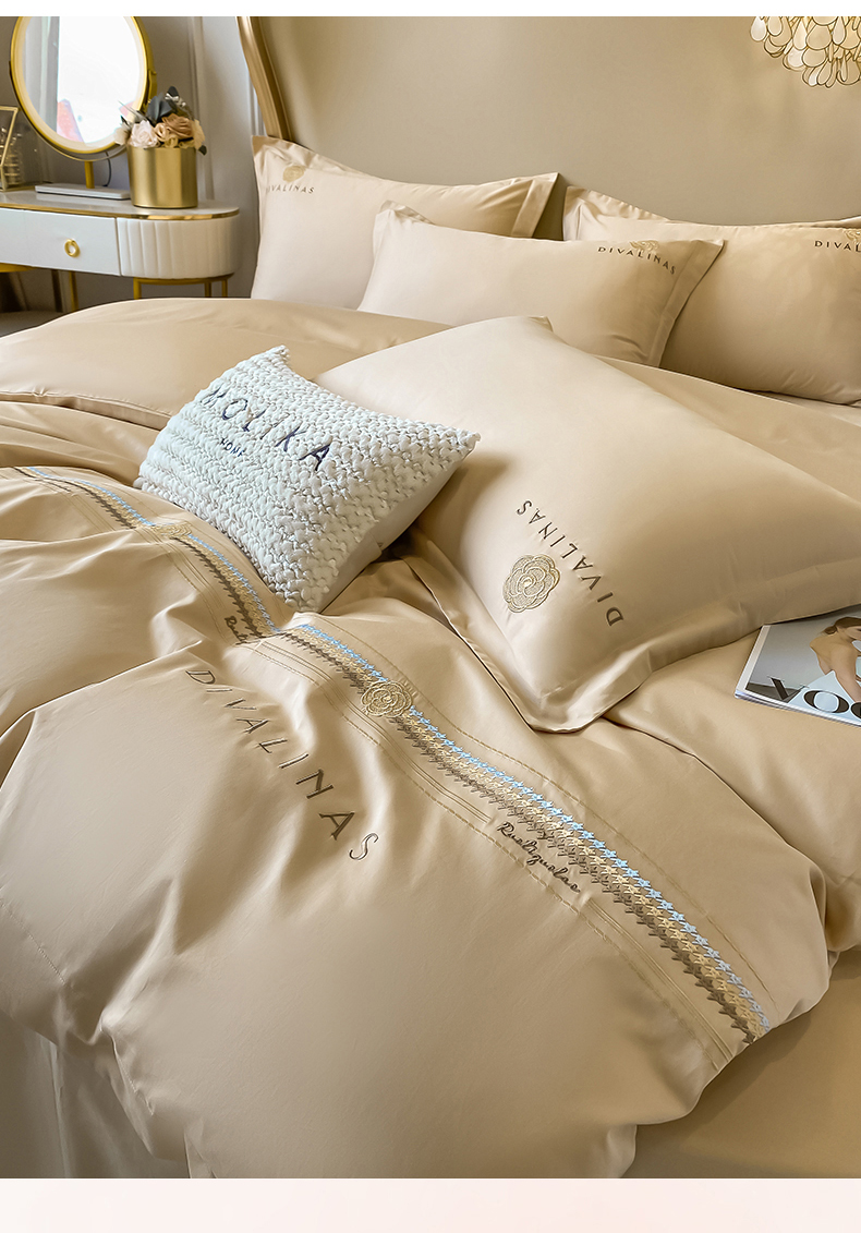 全棉80支长绒棉纯色贡缎四件套绣花工艺