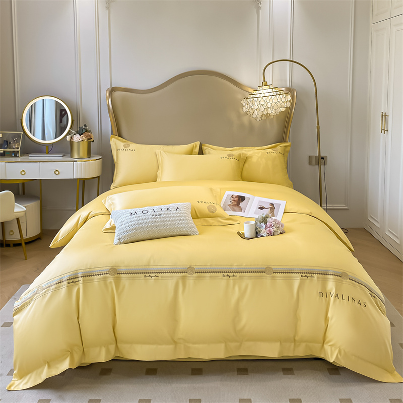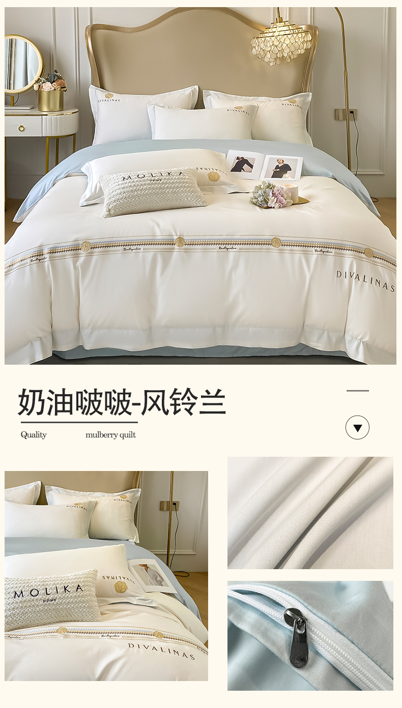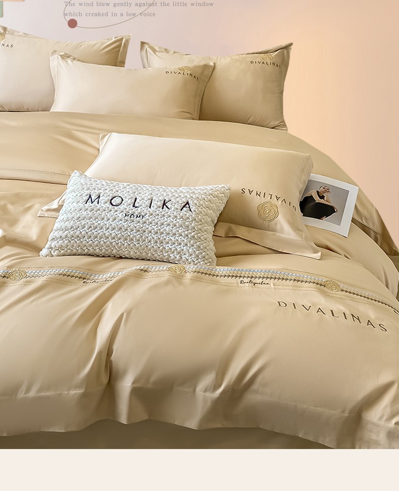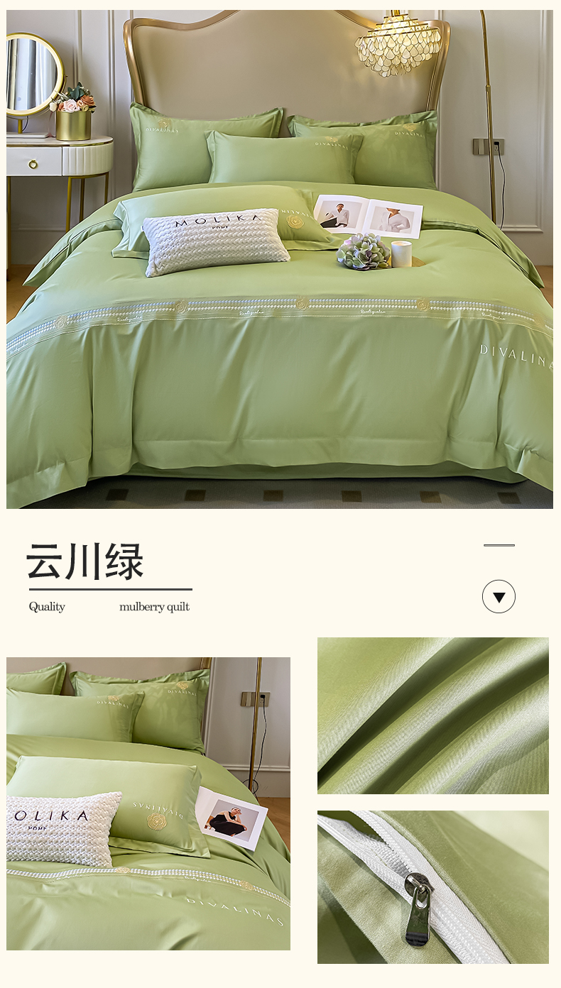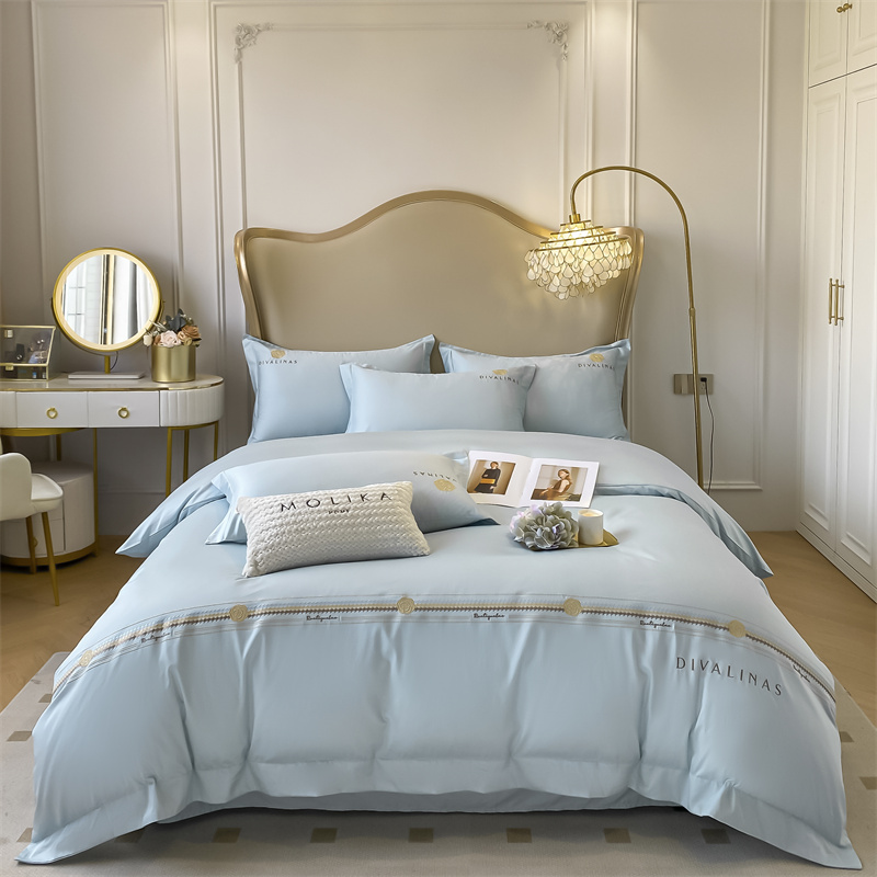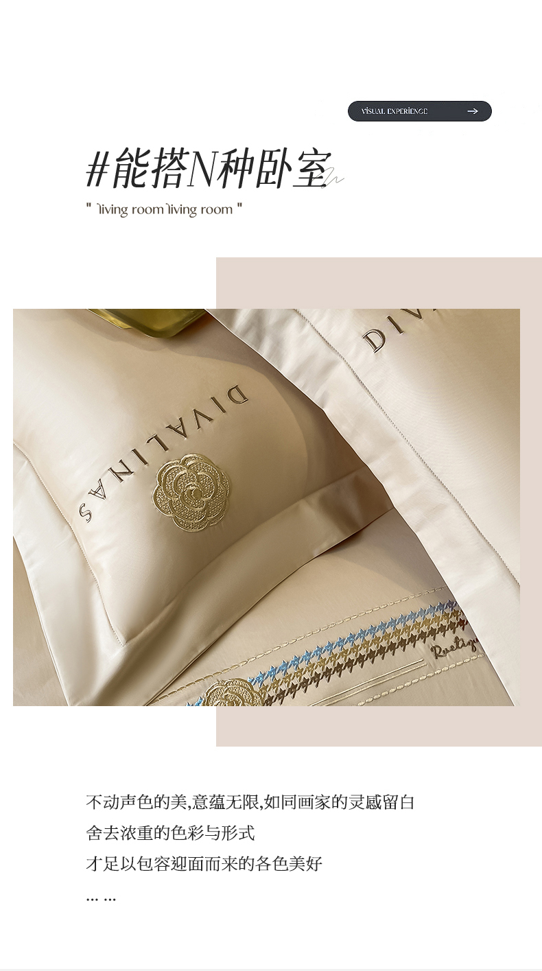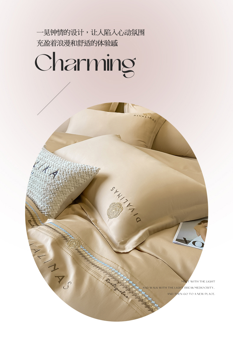 全棉80支长绒棉纯色贡缎四件套绣花工艺