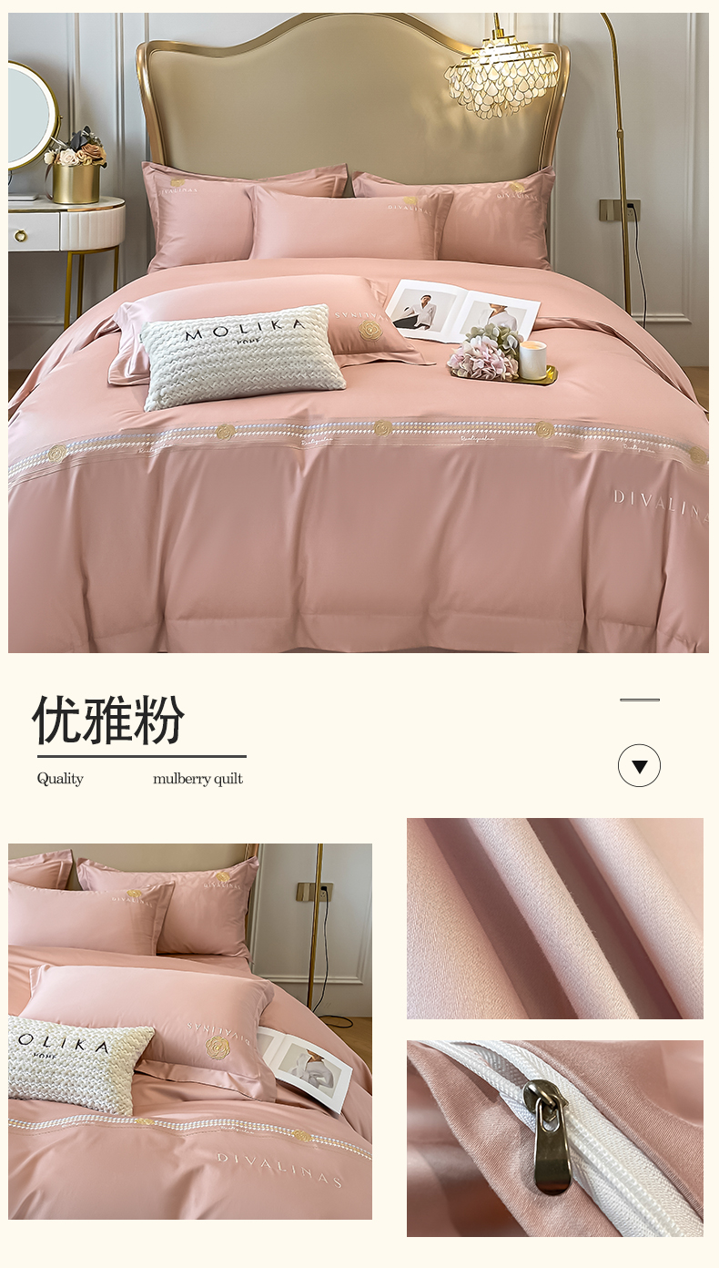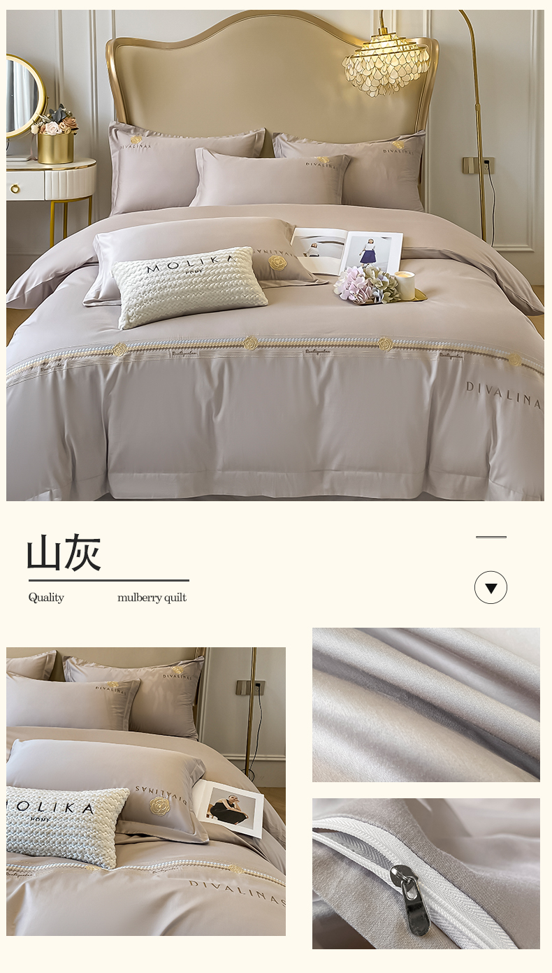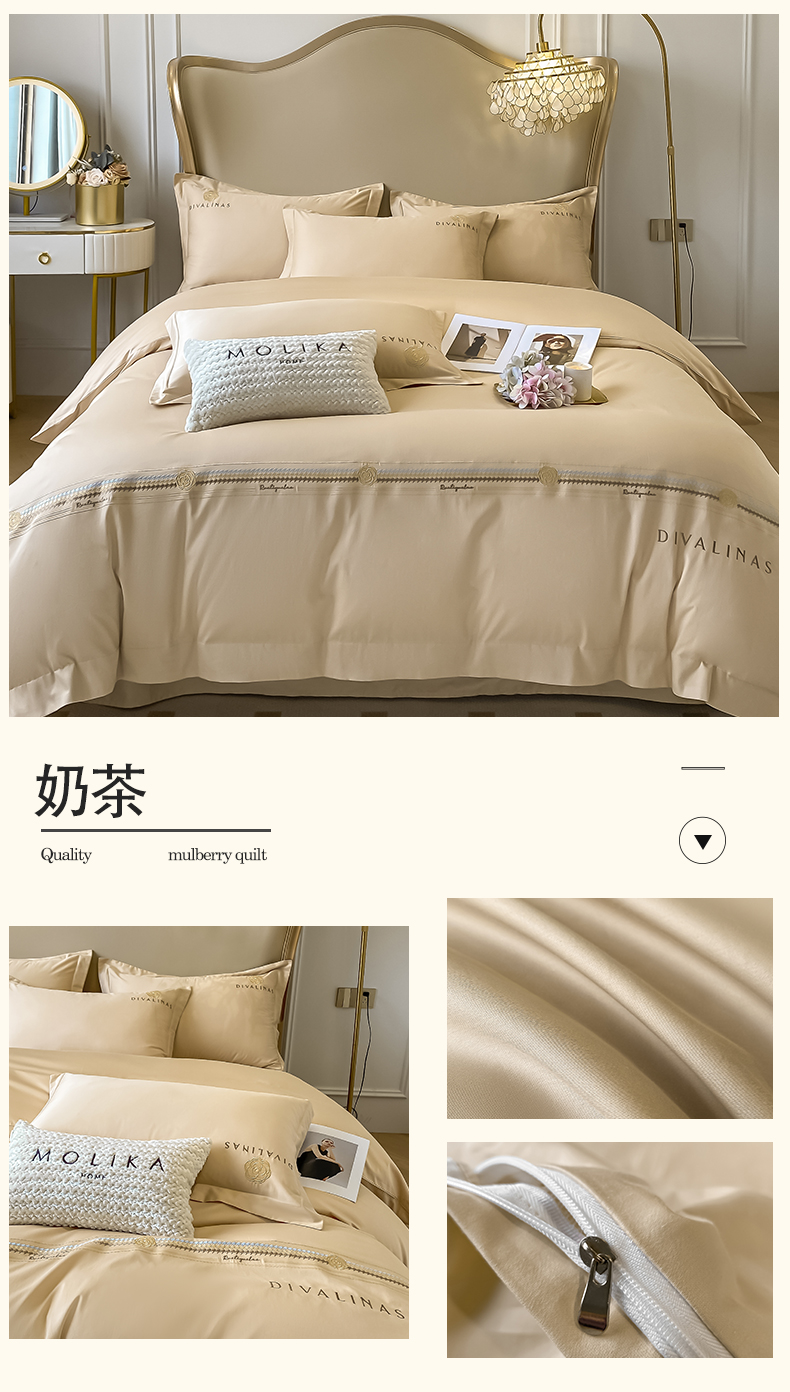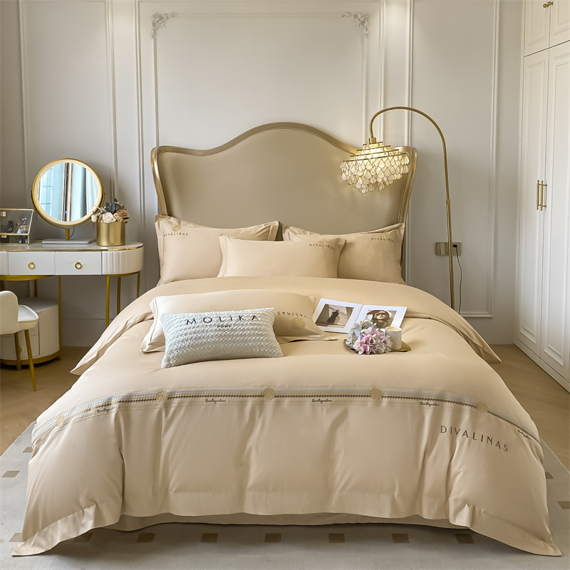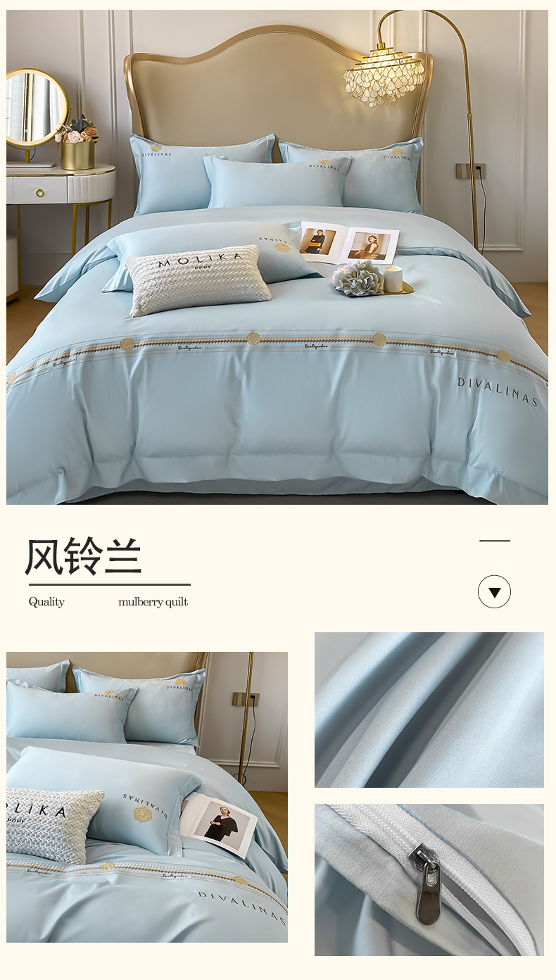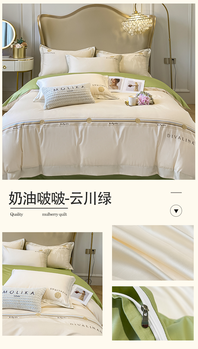 全棉80支长绒棉纯色贡缎四件套绣花工艺