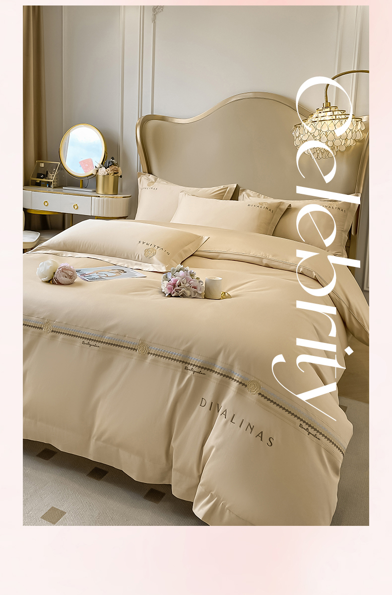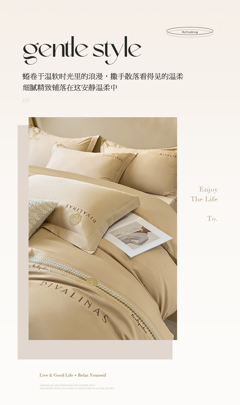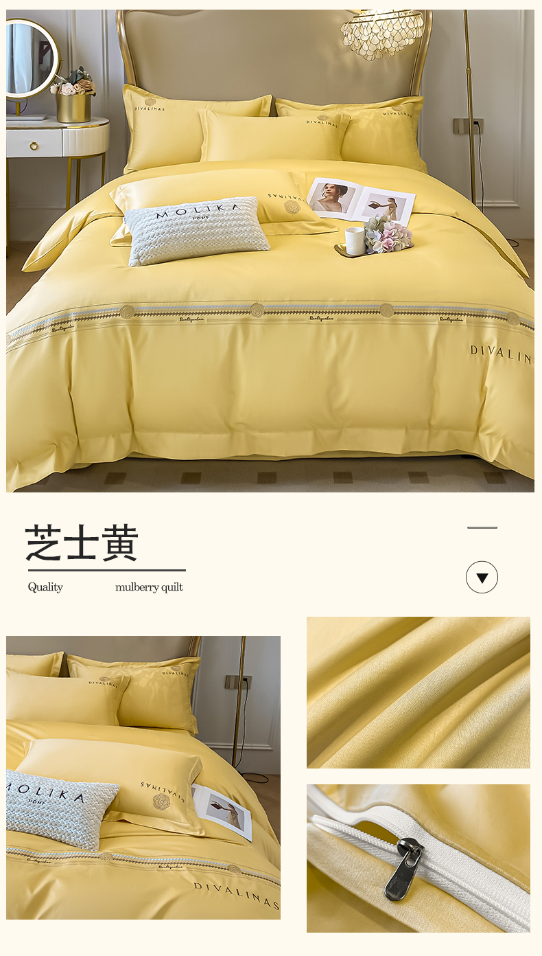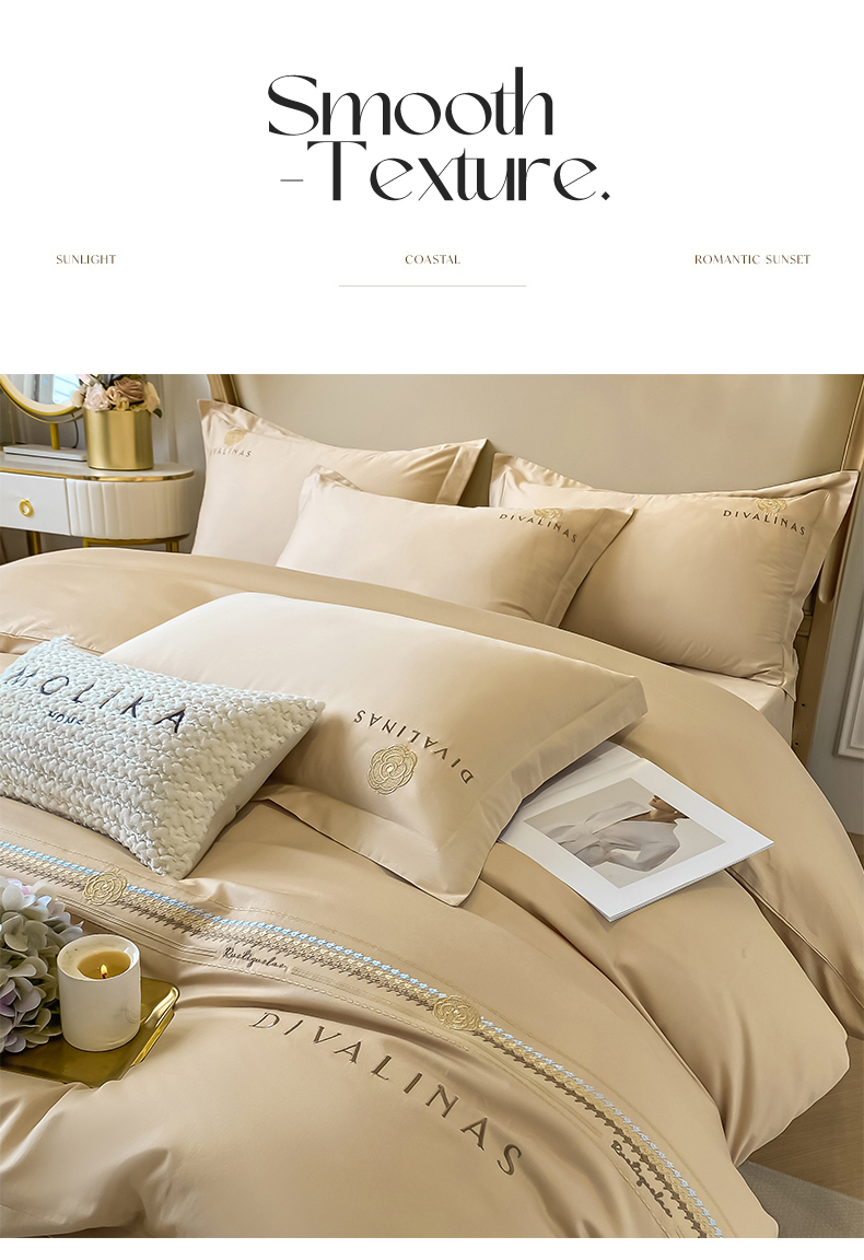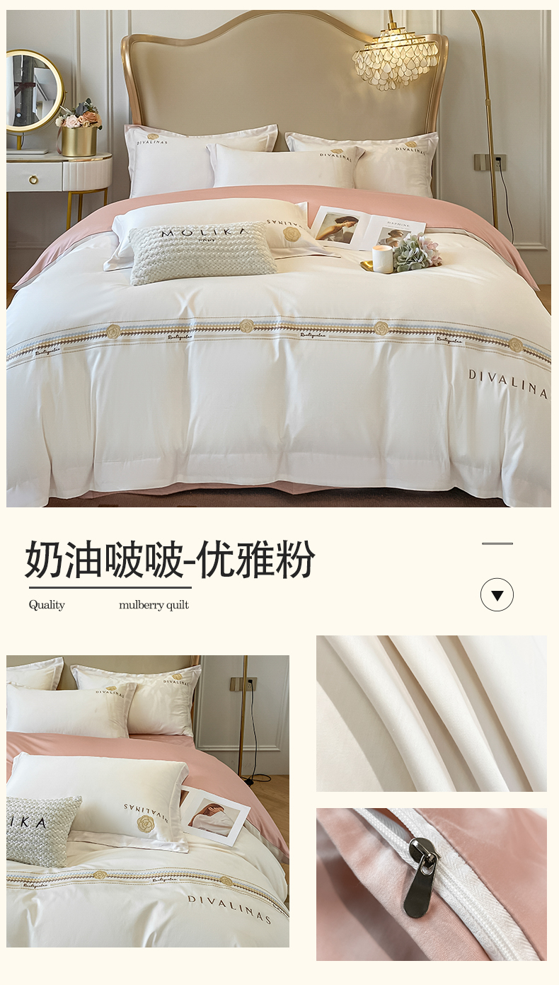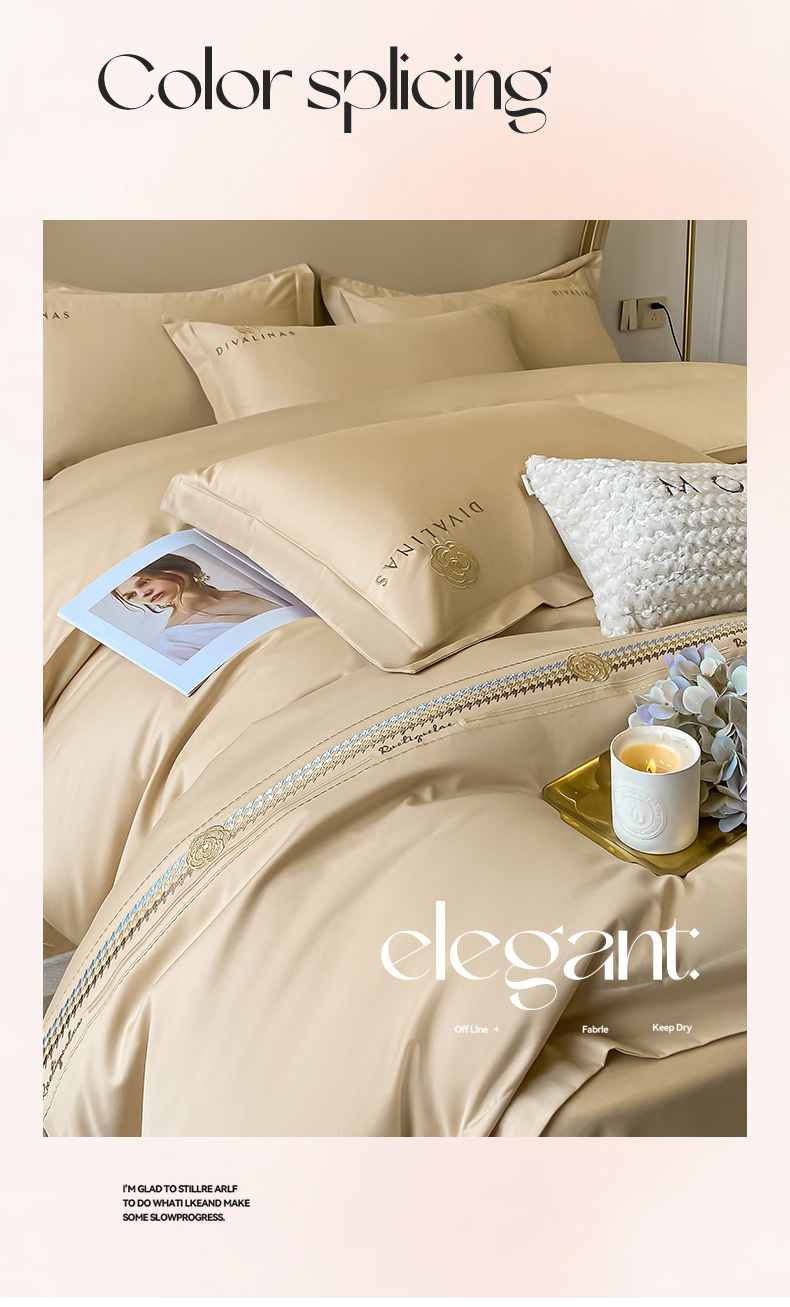 全棉80支长绒棉纯色贡缎四件套绣花工艺