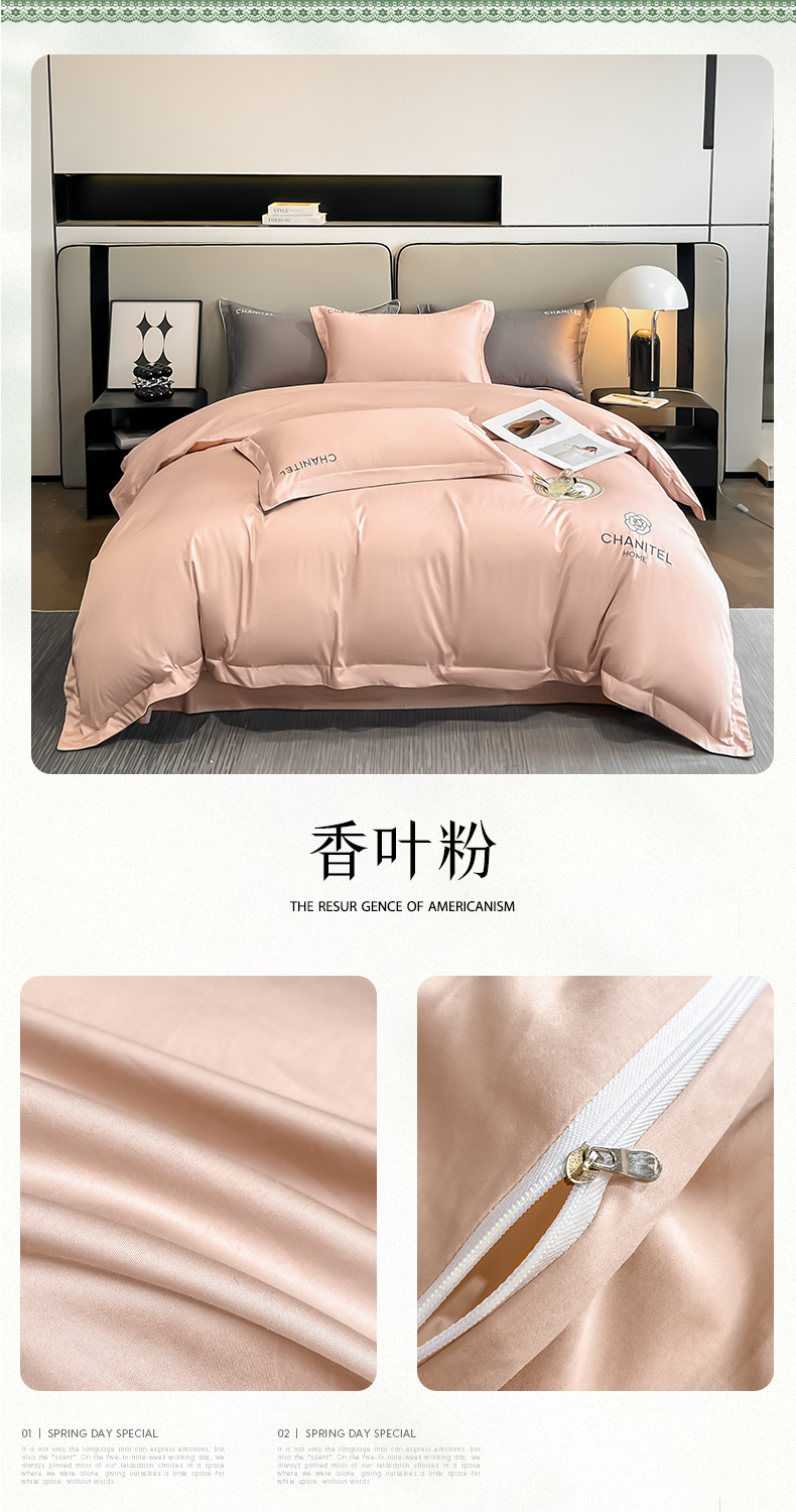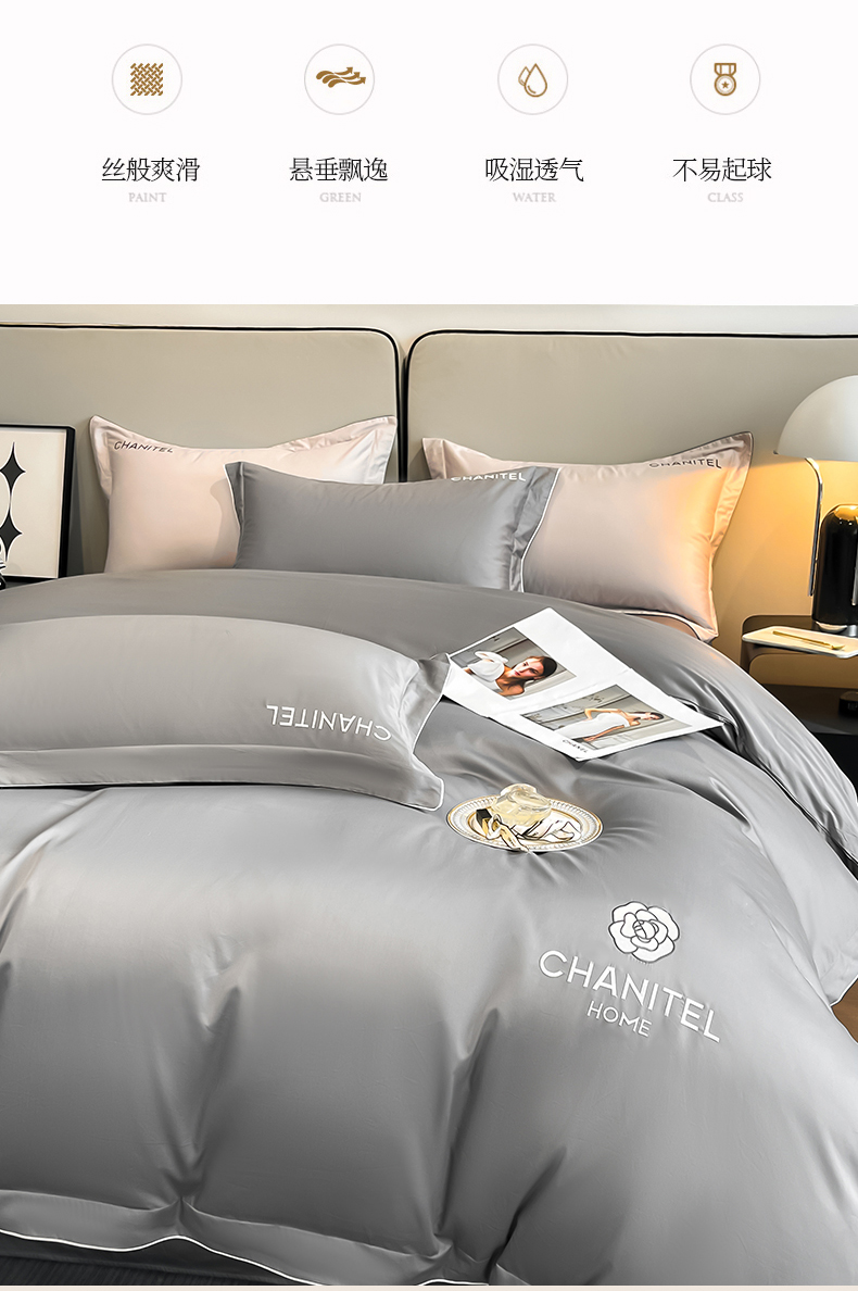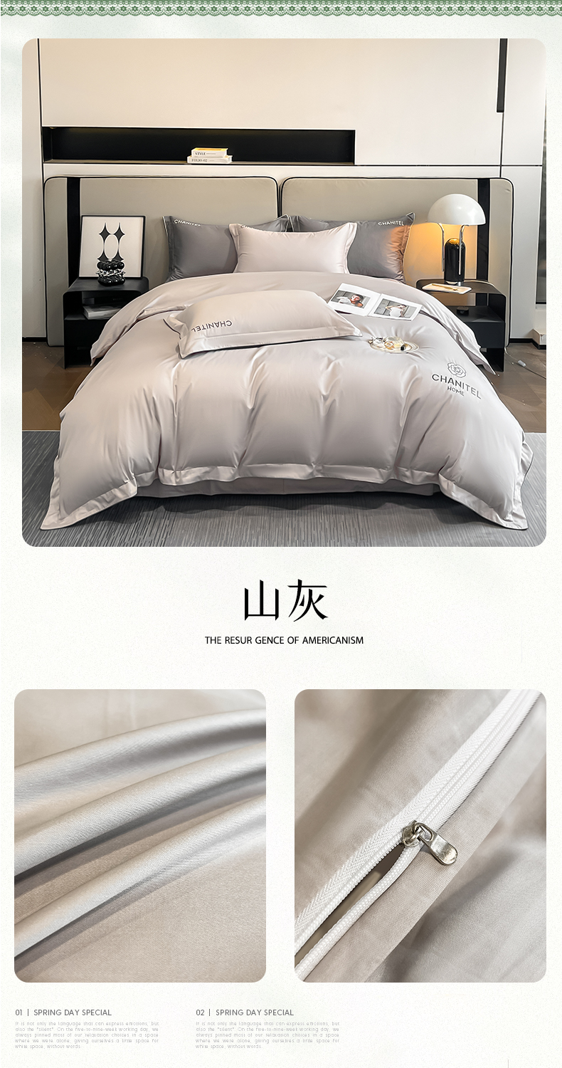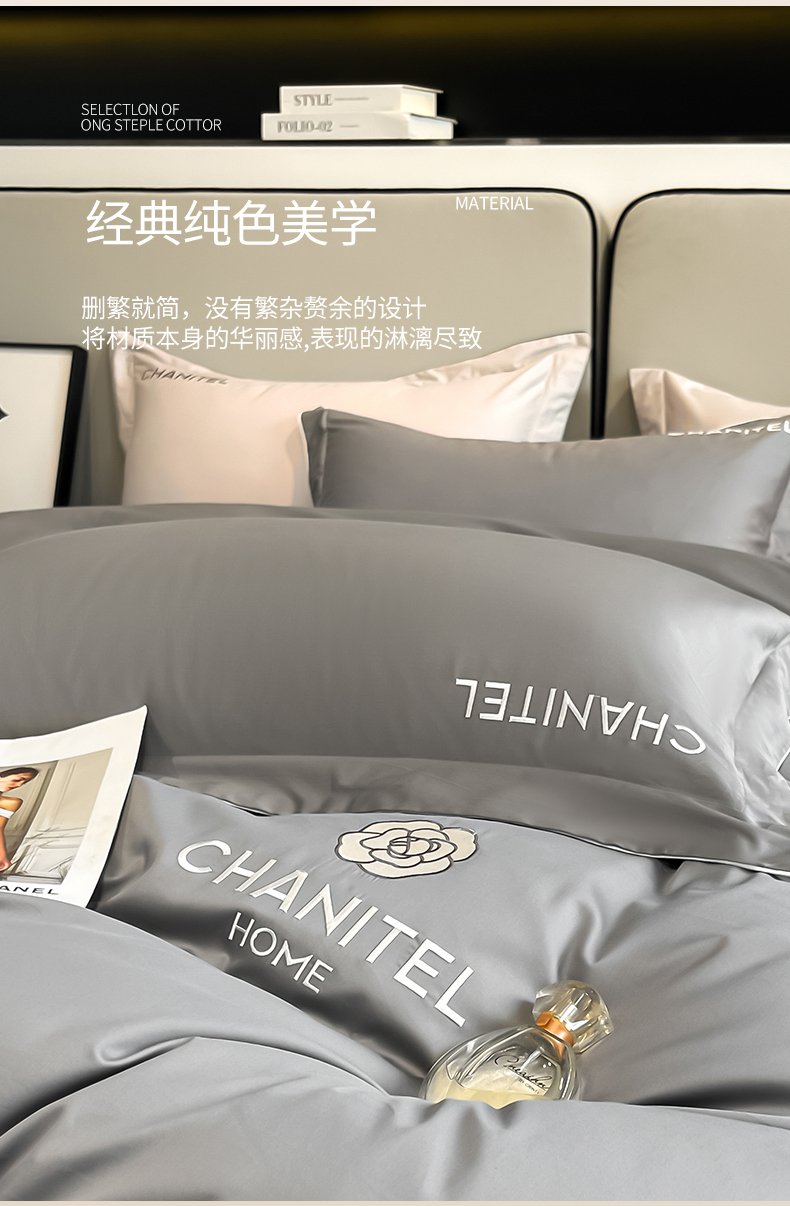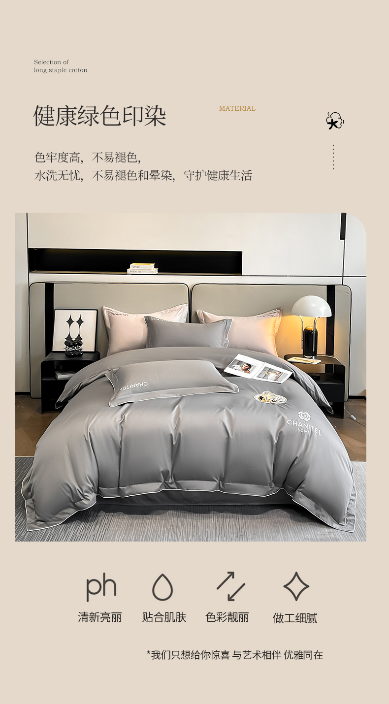 全棉80支长绒棉纯色贡缎四件套绣花工艺