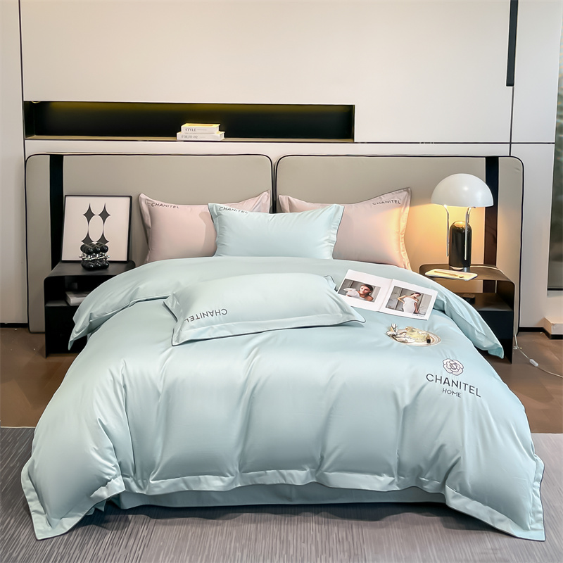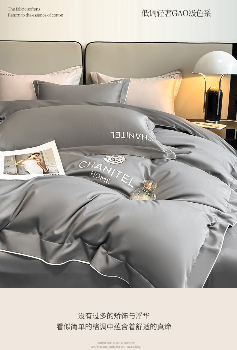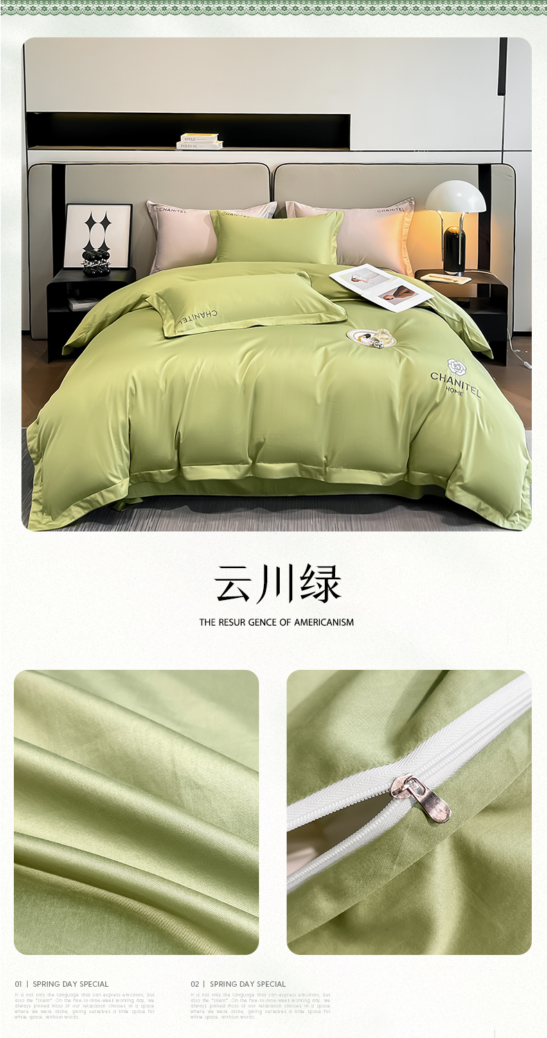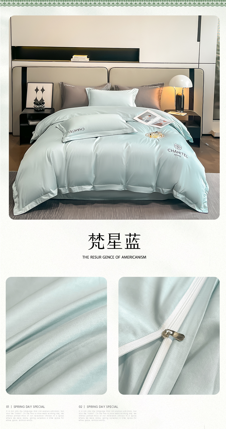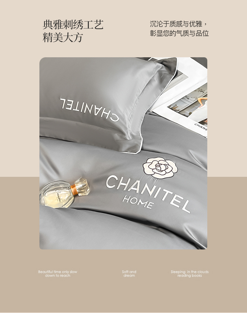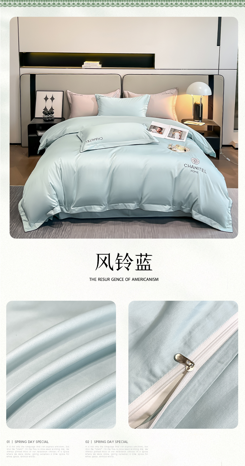 全棉80支长绒棉纯色贡缎四件套绣花工艺