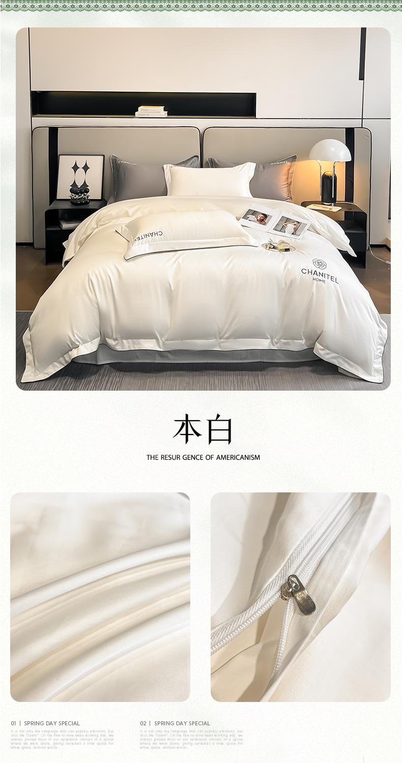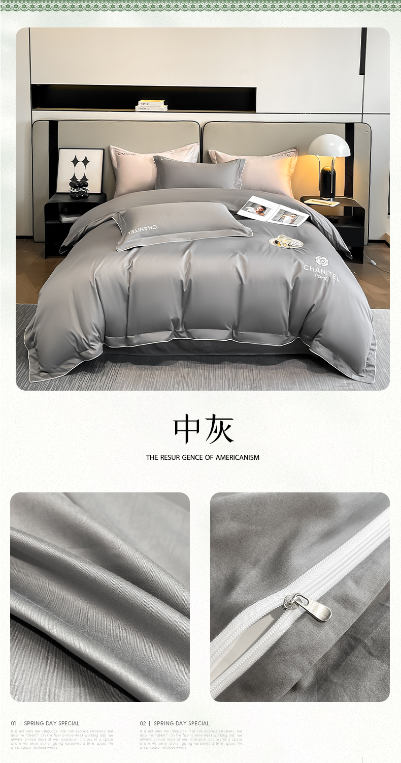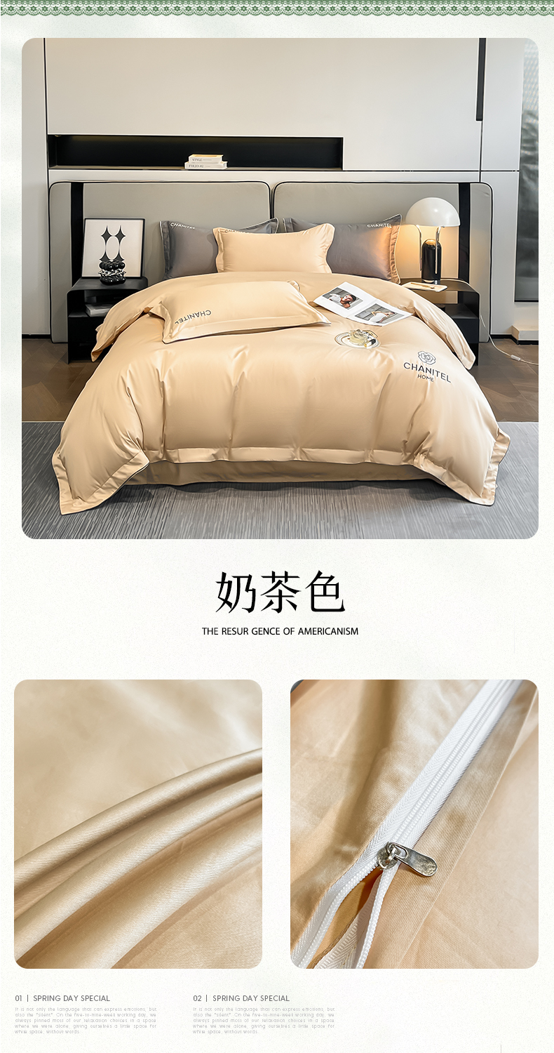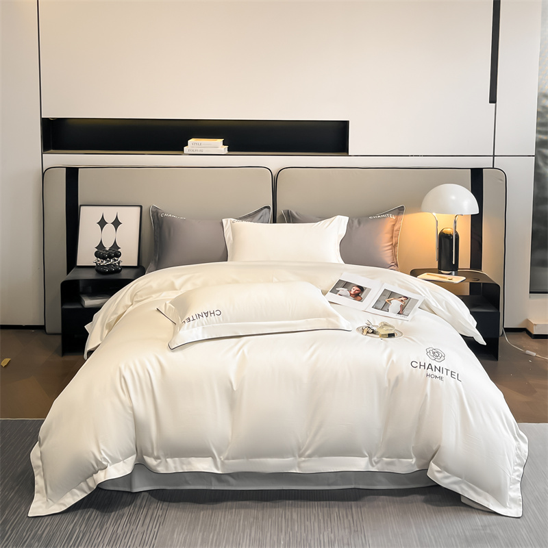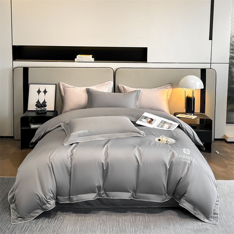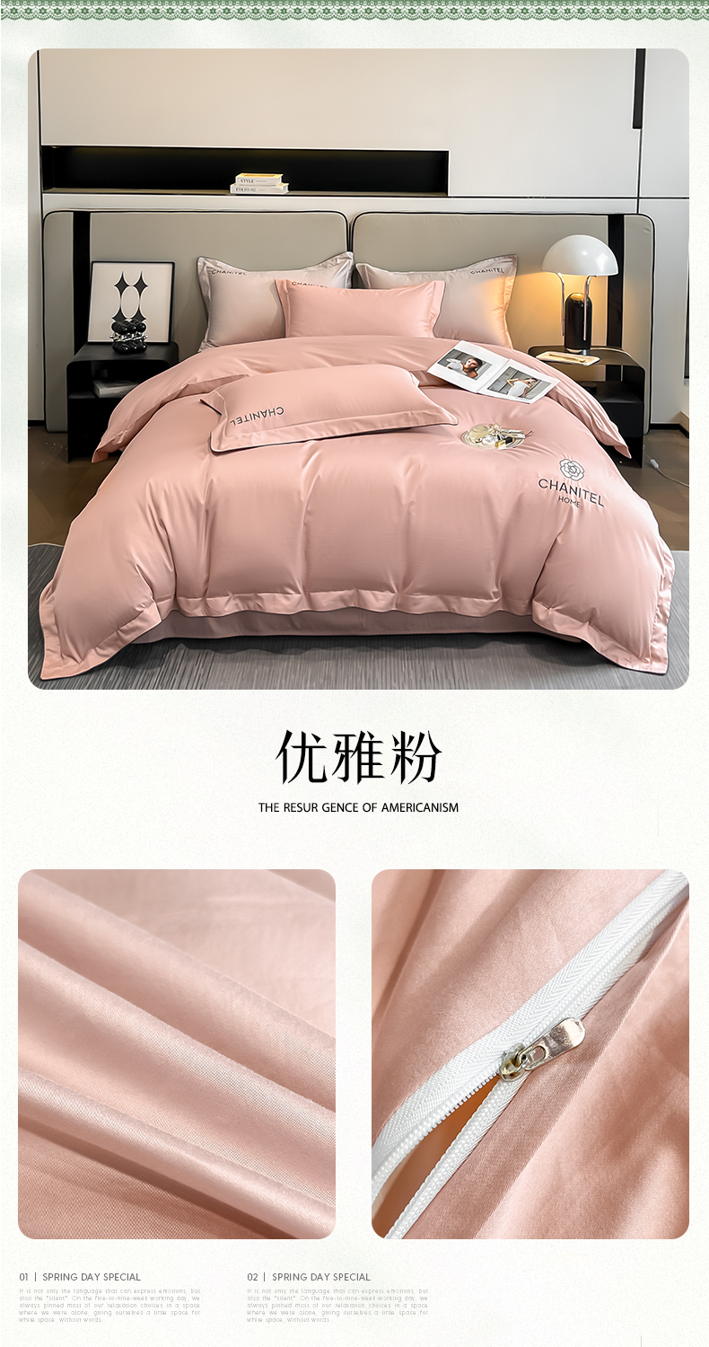 全棉80支长绒棉纯色贡缎四件套绣花工艺
