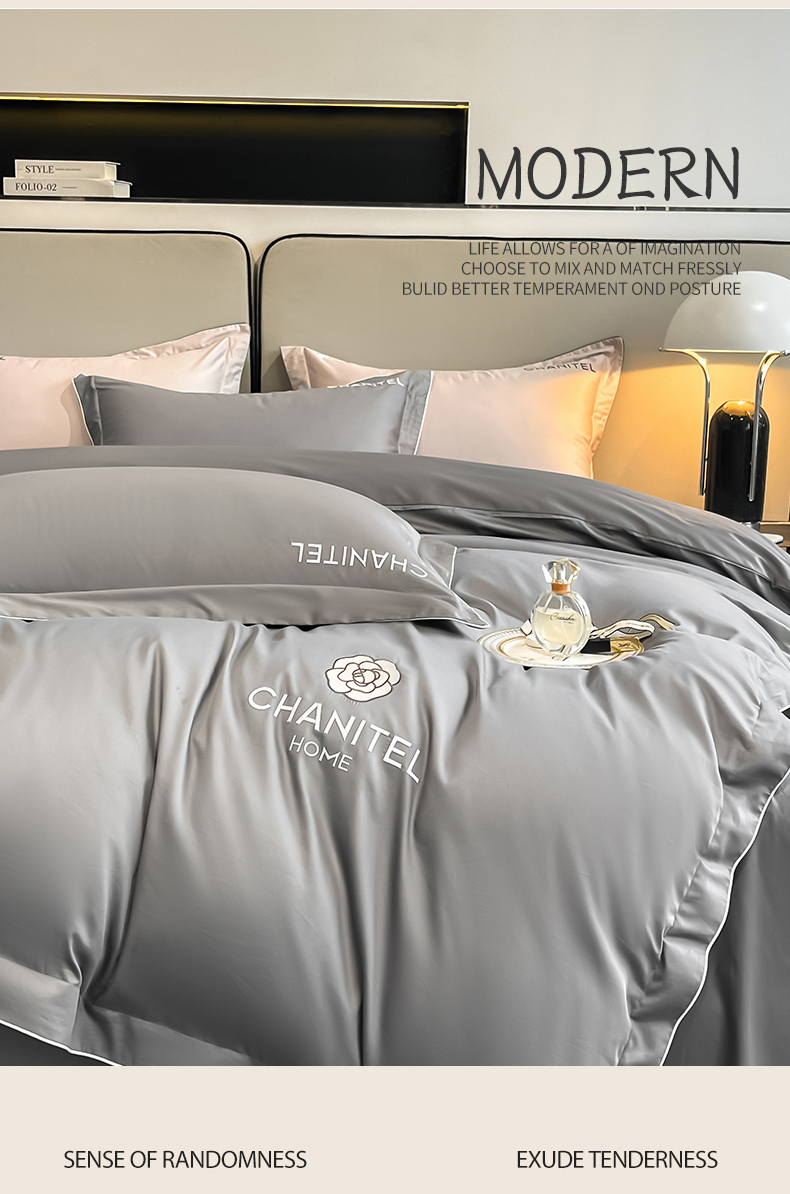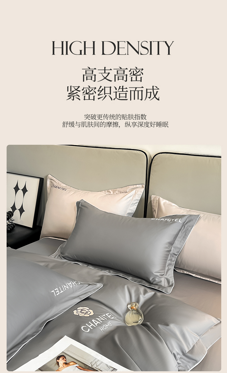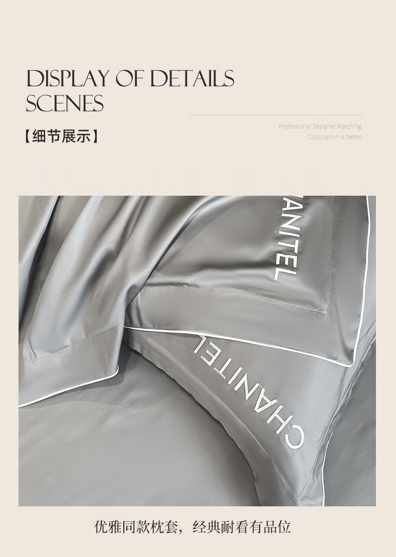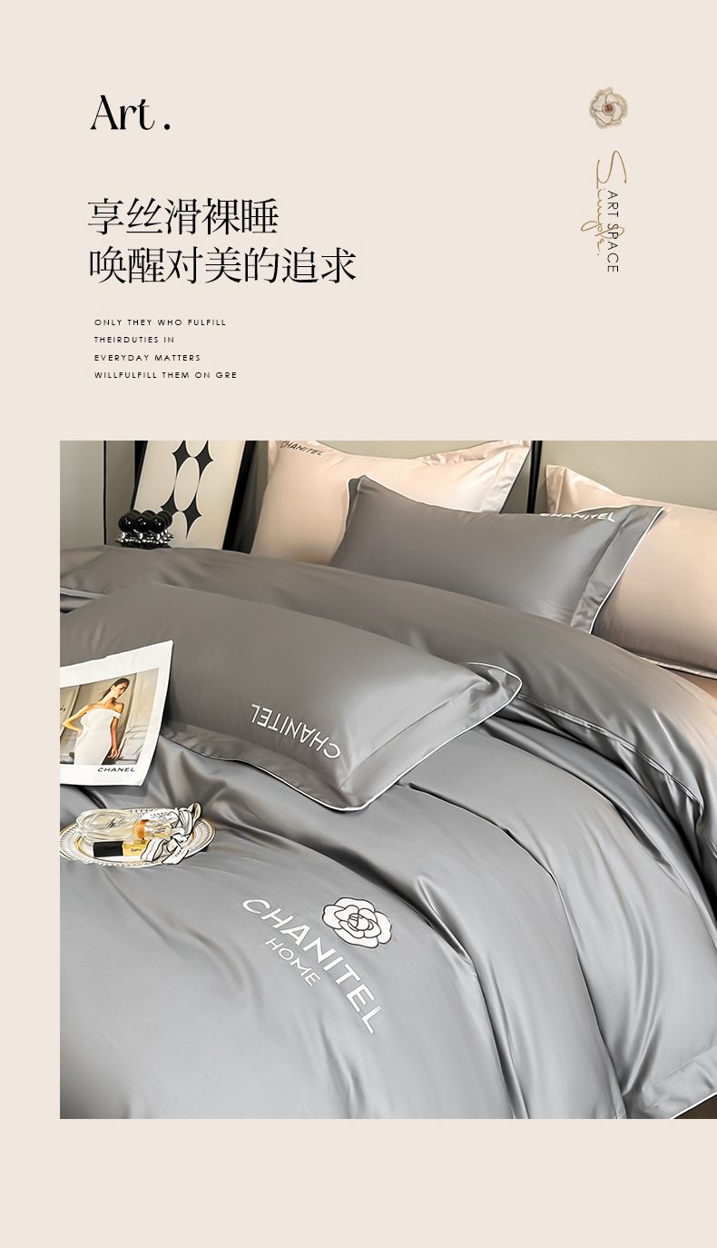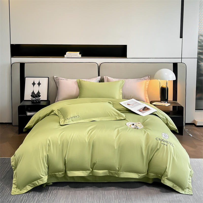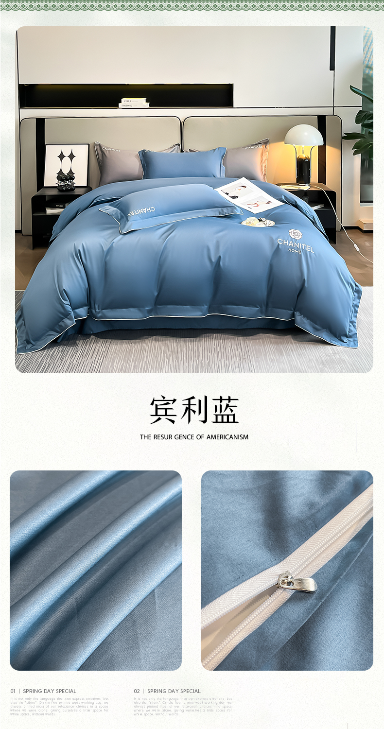 全棉80支长绒棉纯色贡缎四件套绣花工艺