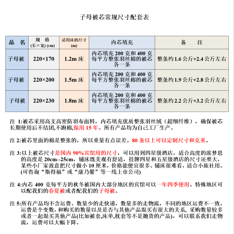 【产品名称】子母被/60支防羽布面料/夏被/春秋被/冬被/家用/宾馆酒店床上用品